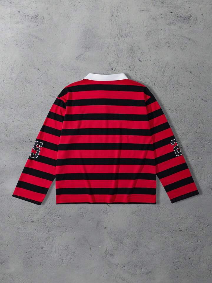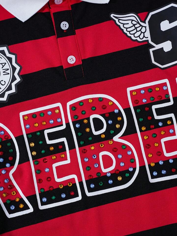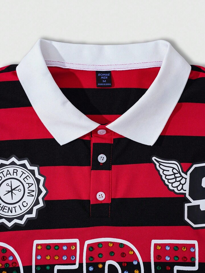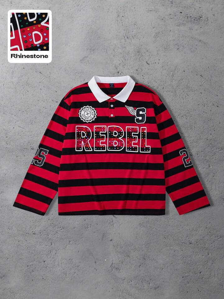 Street Life Men's Sparkling Diamond Prep Striped Loose Fit Long Sleeve Polo Shirt, For Fall