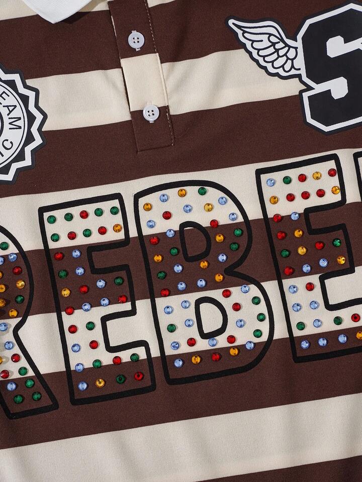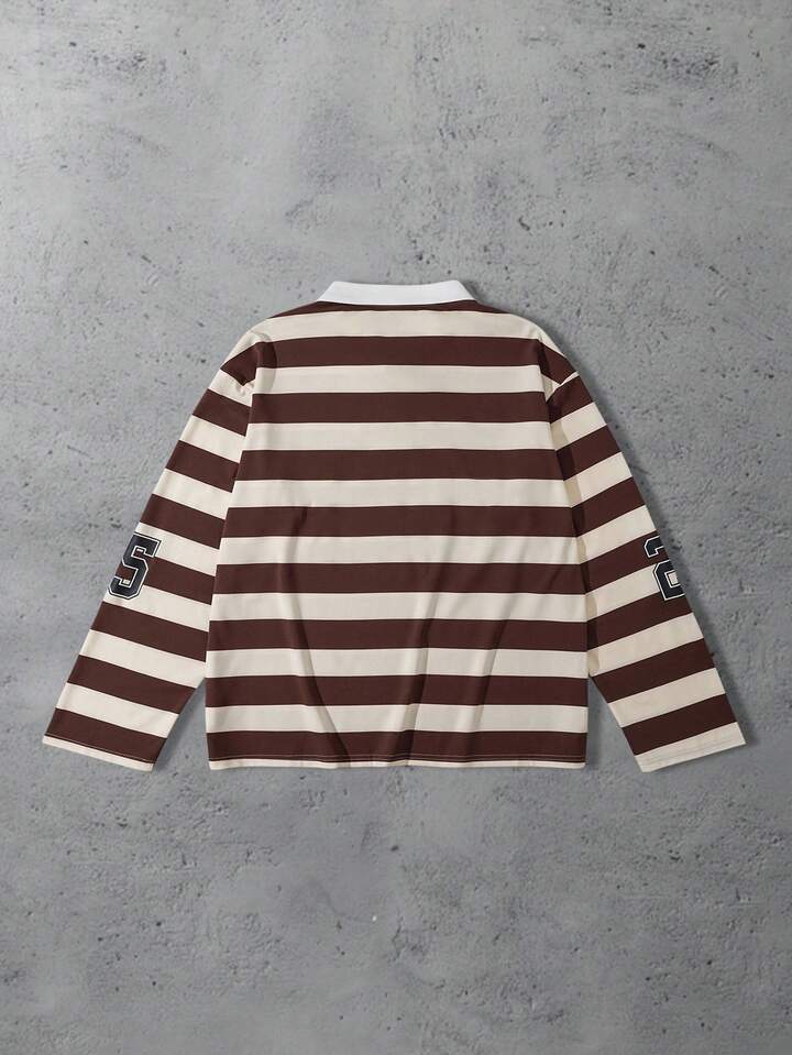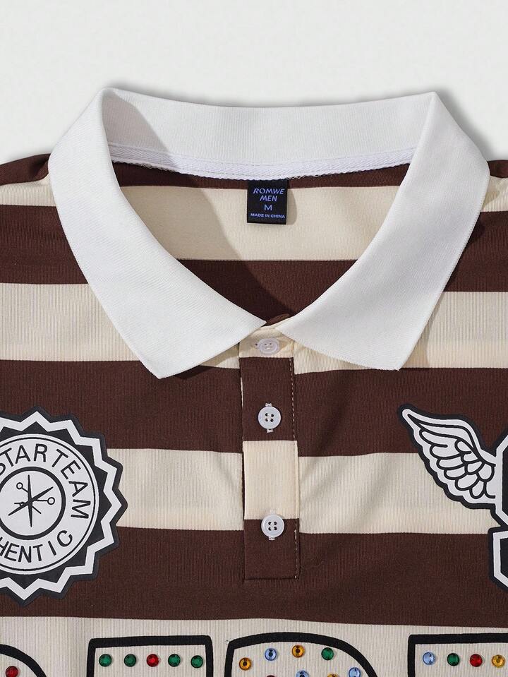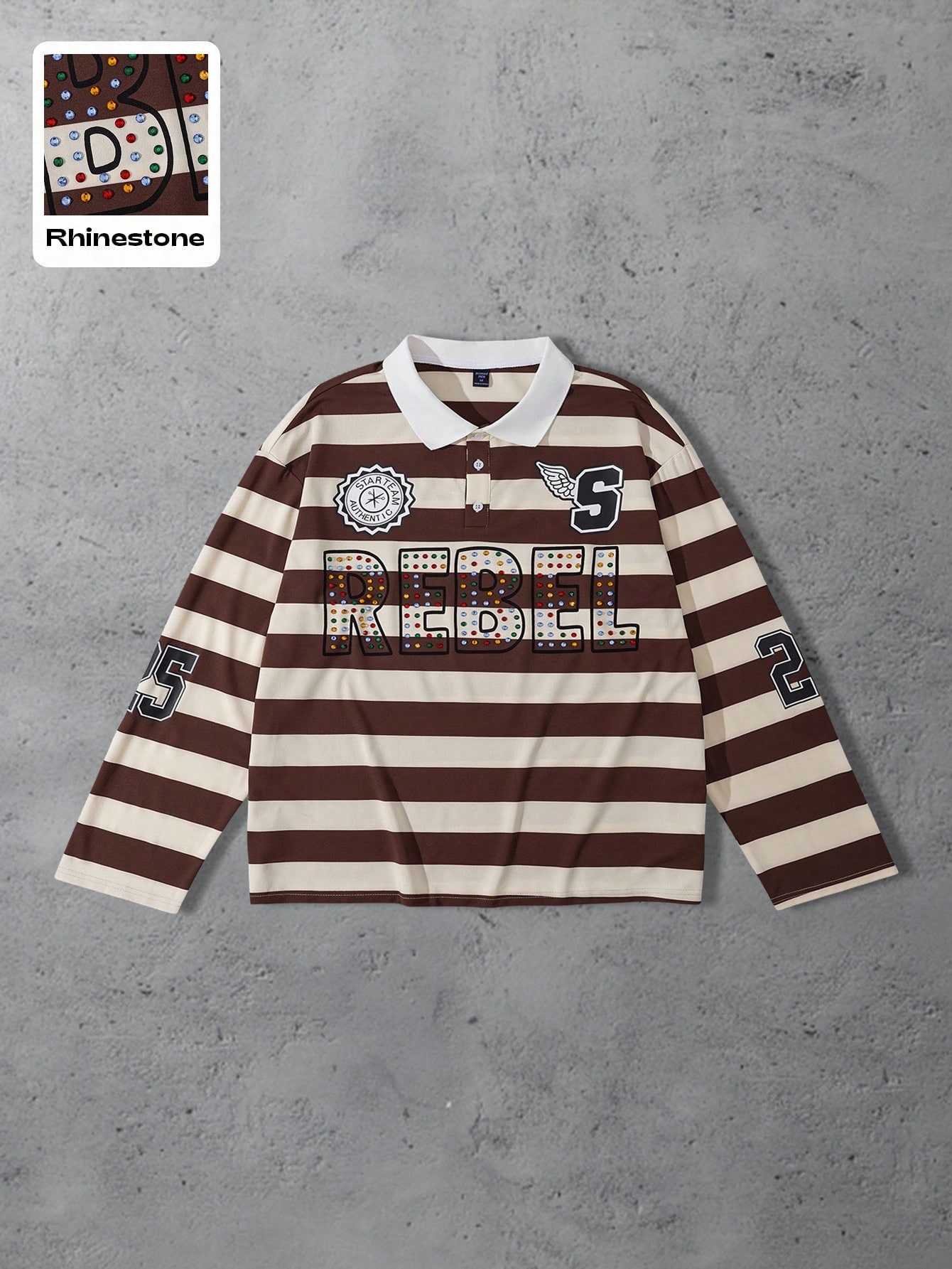 Street Life Men's Sparkling Diamond Striped Loose Fit Long Sleeve Polo Shirt, For Fall