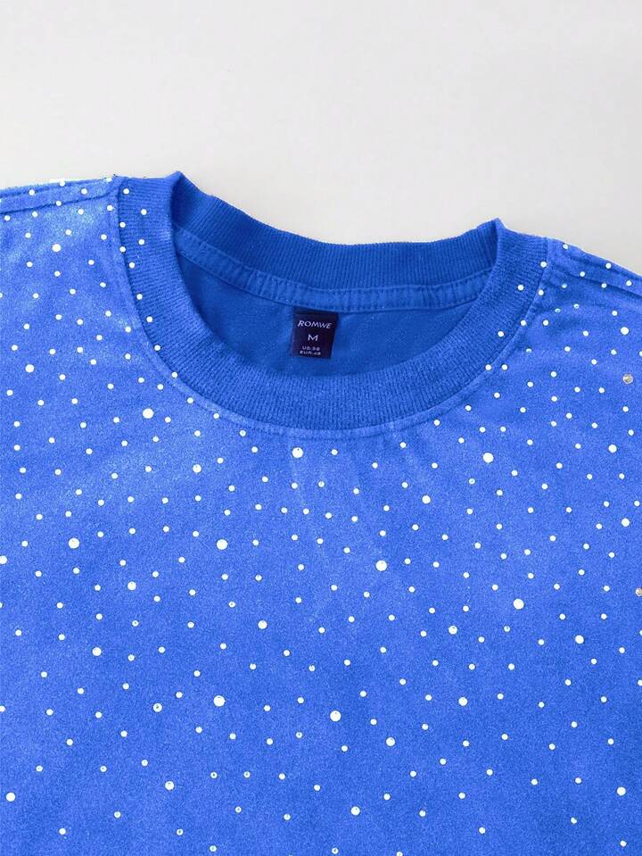 Street Life Men's Sparkling Diamond Washed T-Shirt, Loose Short Style
