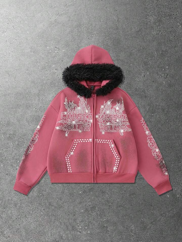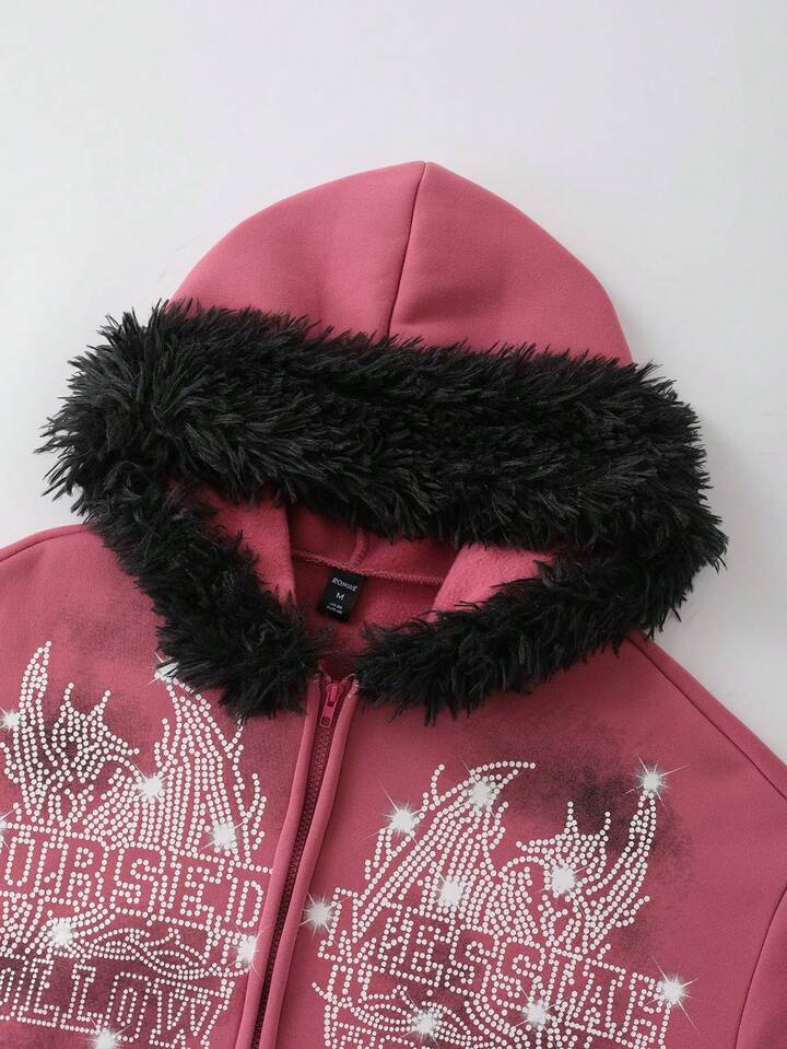 Street Life Men's Sparkling Rhinestone Fuzzy Collar Sweatshirt Sweatshirt, Loose Fit