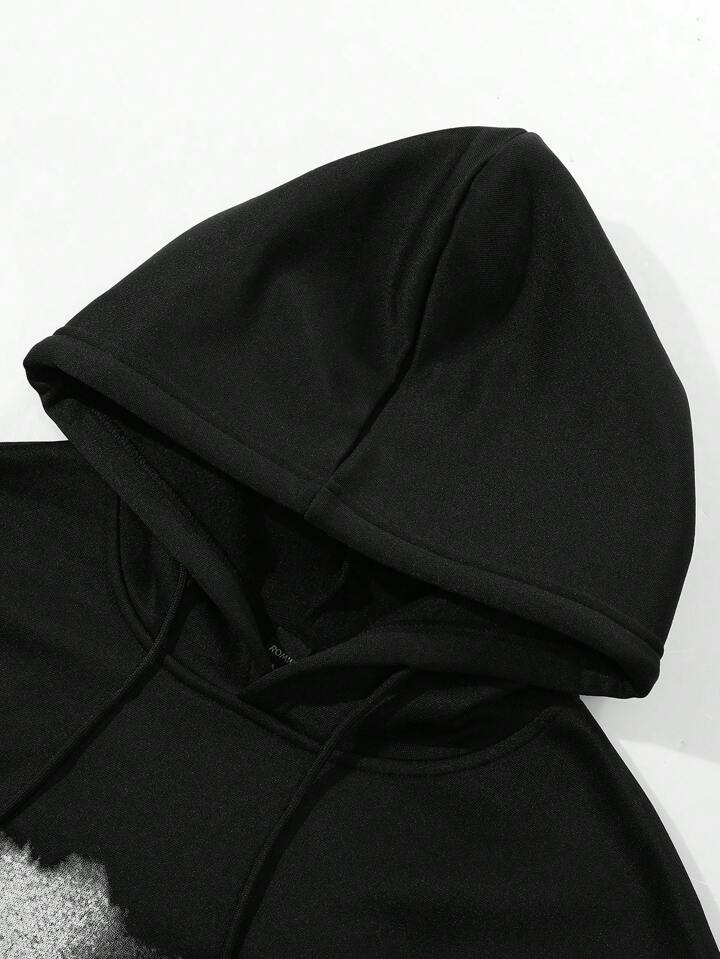 Street Life Men's Sporty Casual Hoodie With Portrait & Slogan Print, Drawstring For Autumn Everyday Wear