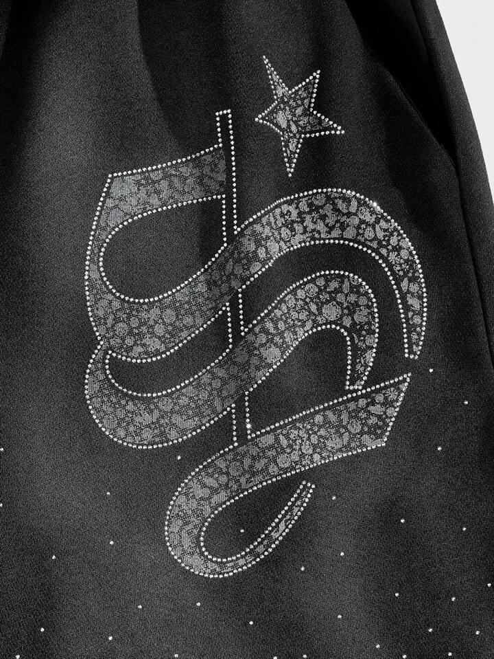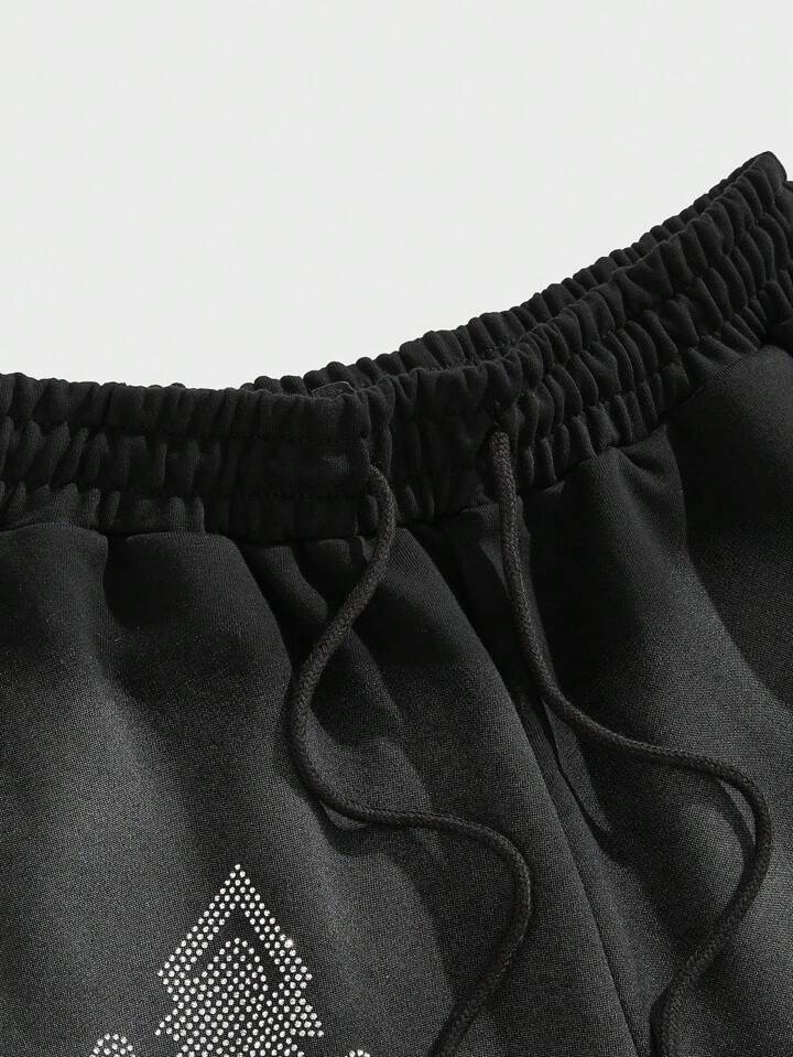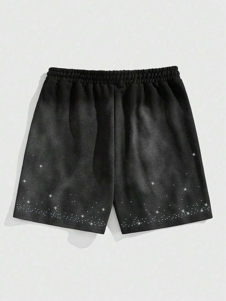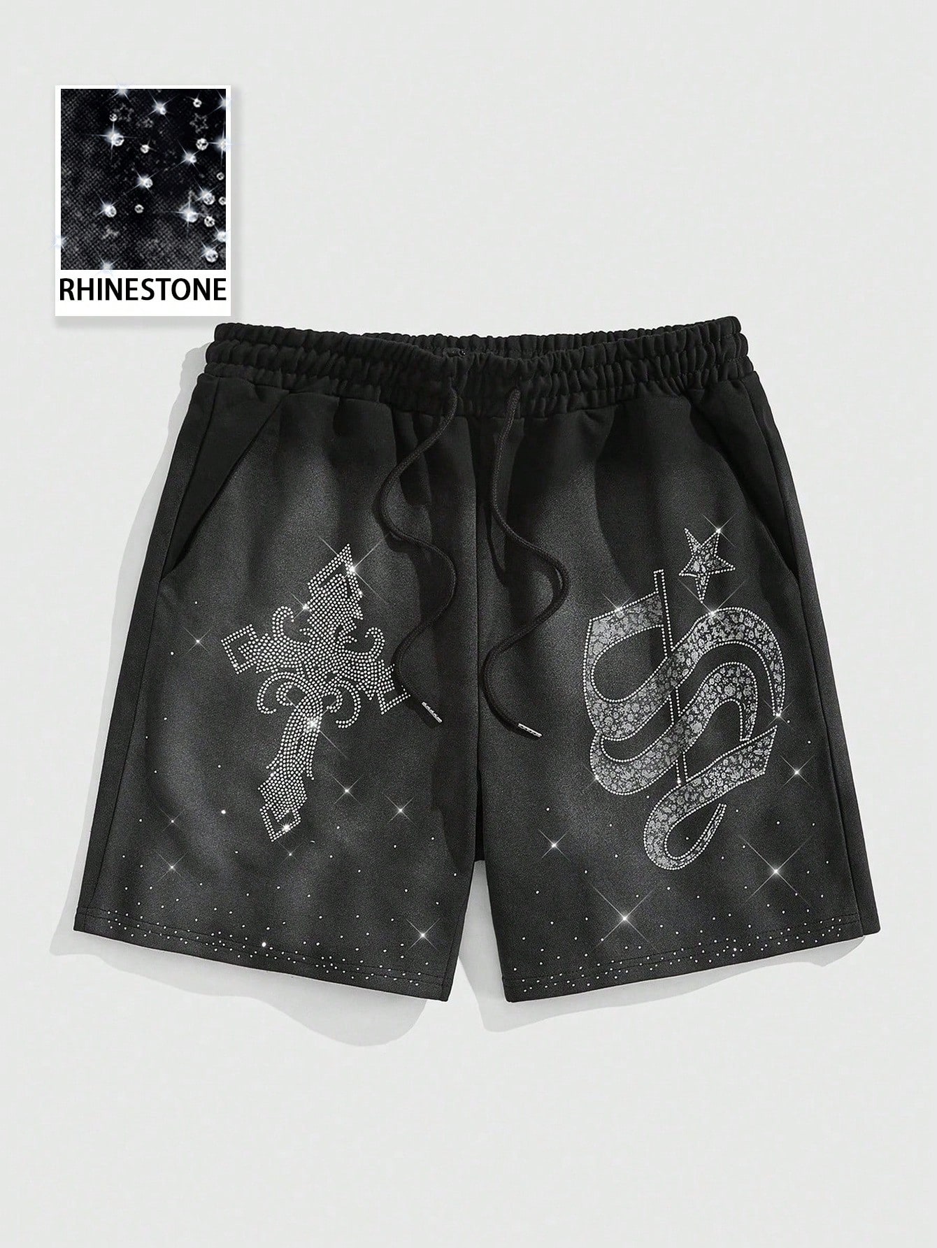 Street Life Men's Spring/Summer Casual Rhinestone Cross Embellished Shorts, Streetwear Style