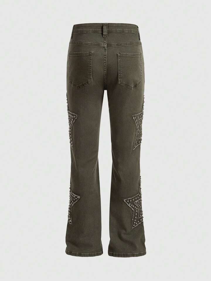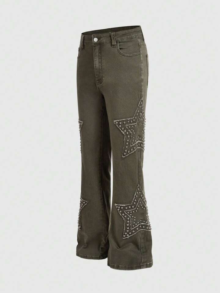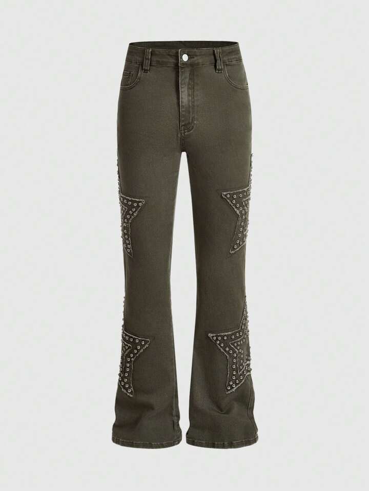 Street Life Men's Star Green Skinny Beaded Denim Jeans