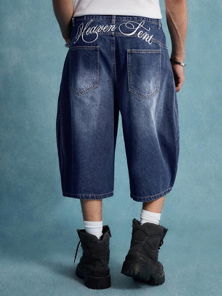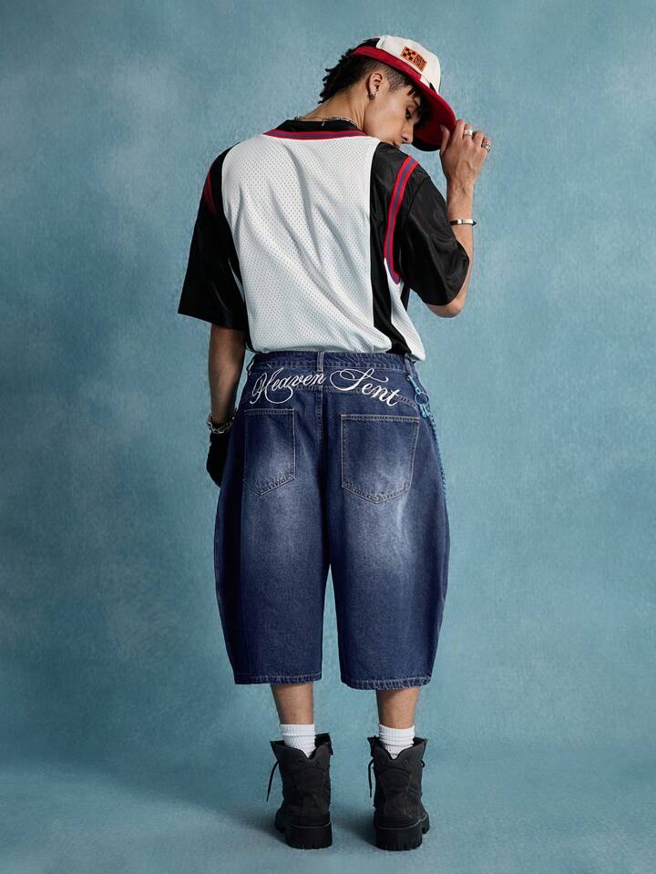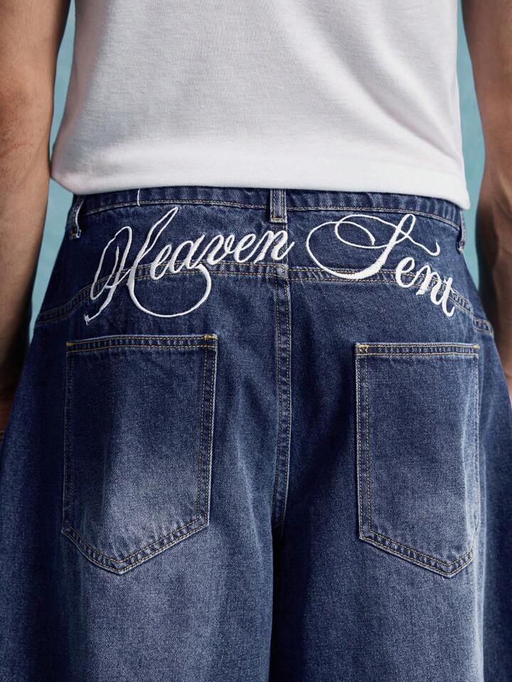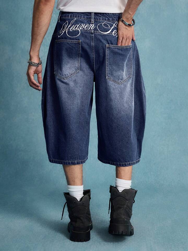 Street Life Men's Street Casual Washed Lettering Embroidery Denim Jeans