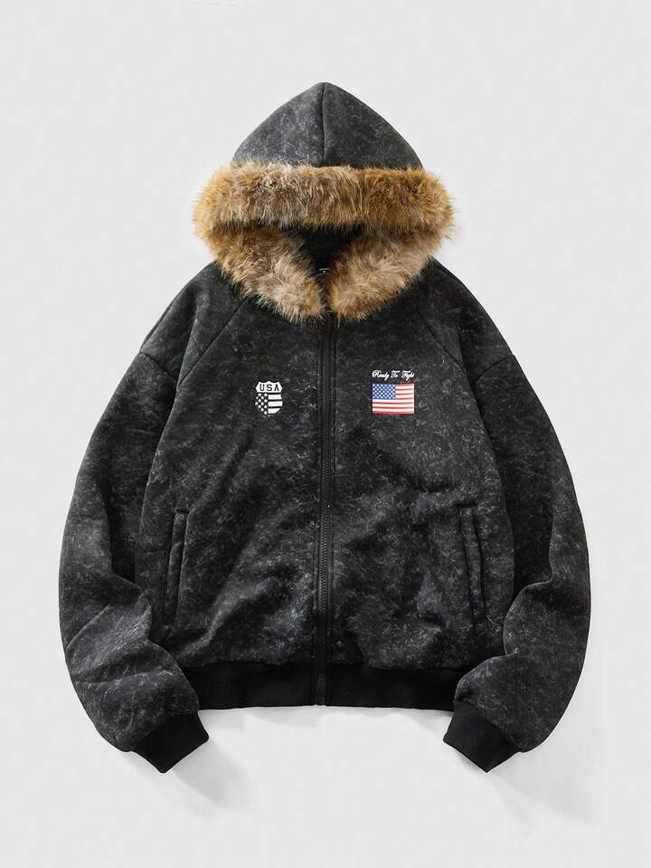 Street Life Men's Street Fashion Fleece Hooded National Flag Sweatshirt
