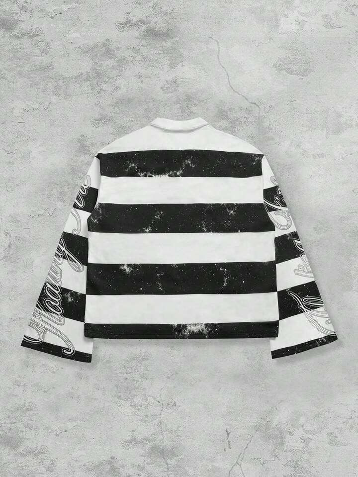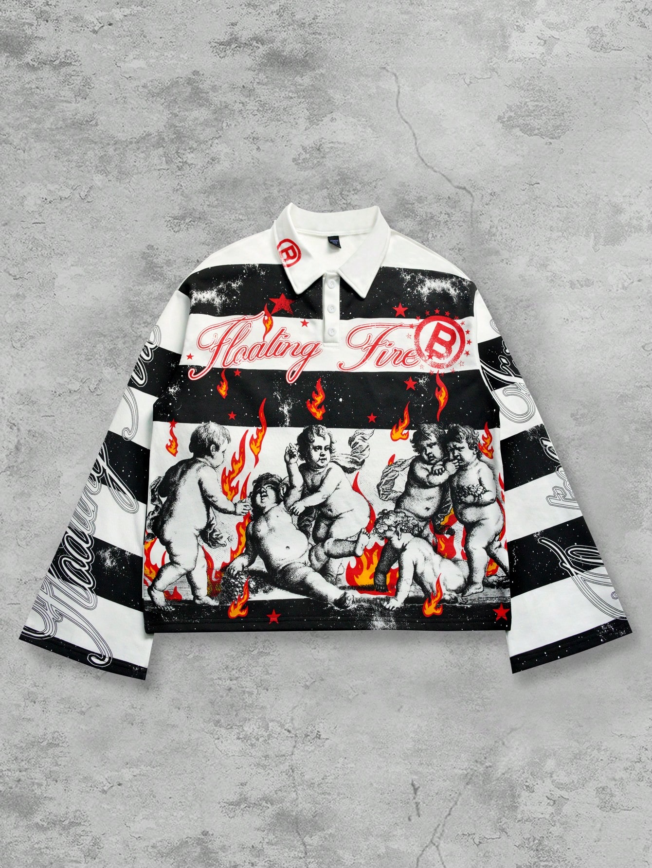 Street Life Men's Street Graphic Print Striped Polo Collar Long Sleeve T-Shirt, Autumn/Winter