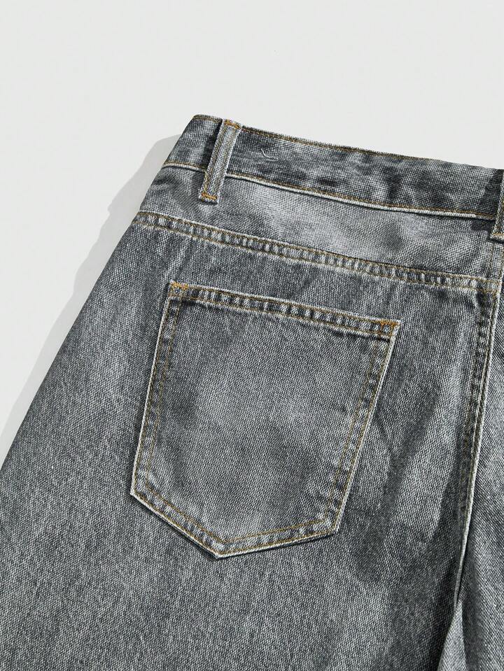 Street Life Men's Street Letter Print Pocket Ripped Casual Denim Shorts
