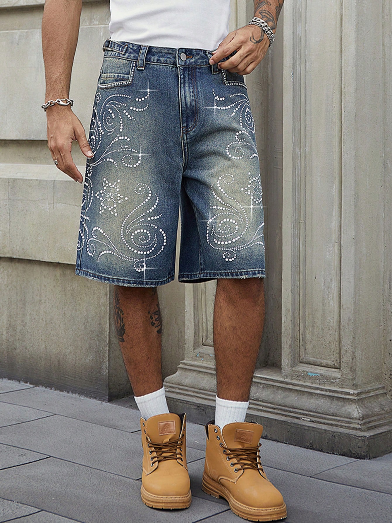 Men's Street Life Floral Print Pocketed Loose Bermuda Denim Shorts