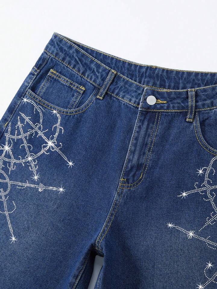 Street Life Men's Street Rhinestone Decor Pocket Denim Shorts