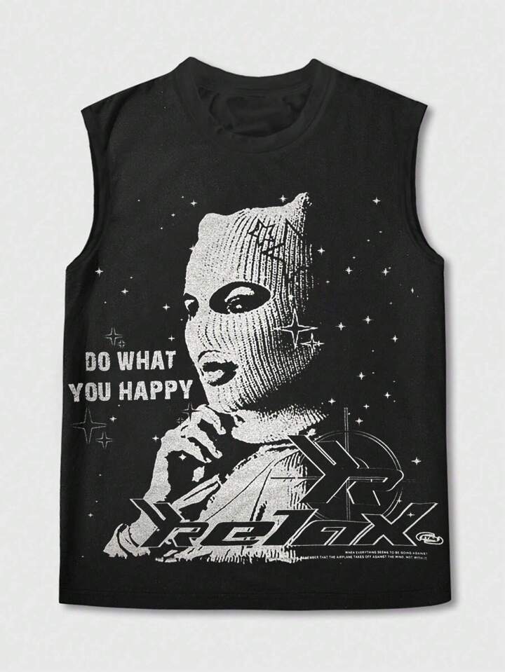 Street Life Men's Street Slogan & Figure Print Round Neck Tank Top
