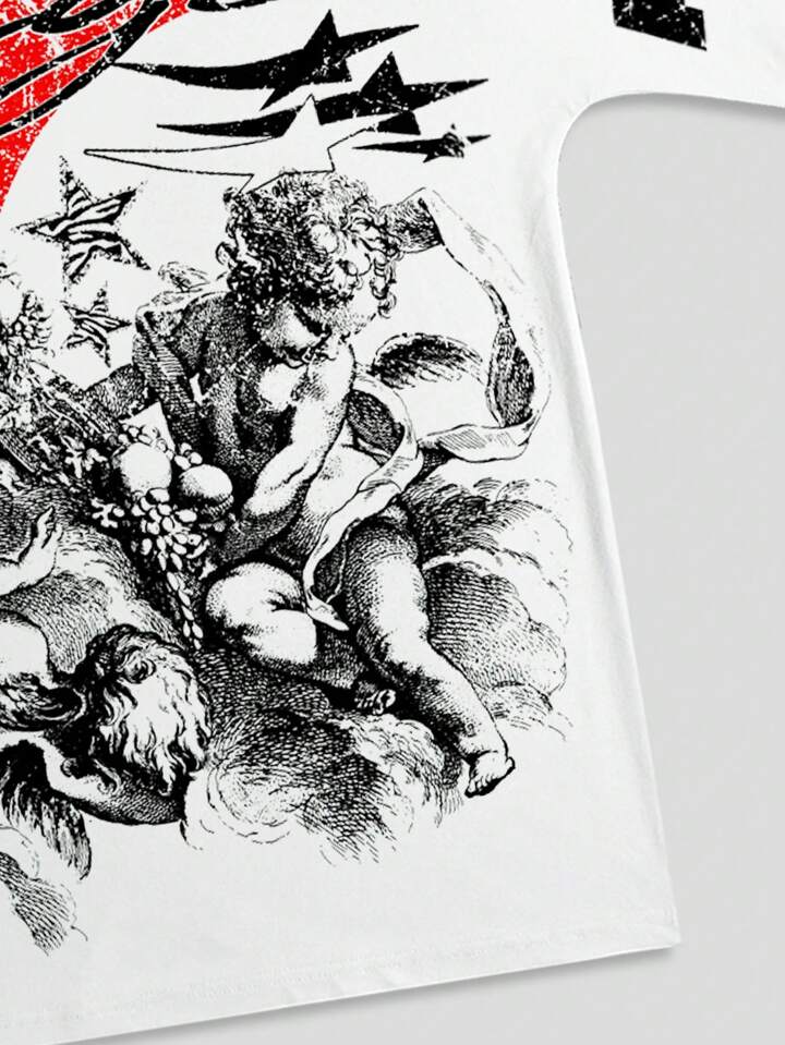 Street Life Men's Street Style Batwing Sleeve Printed Short Sleeve T-Shirt, Casual Everyday Wear, Halloween