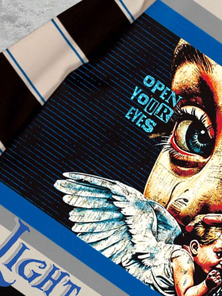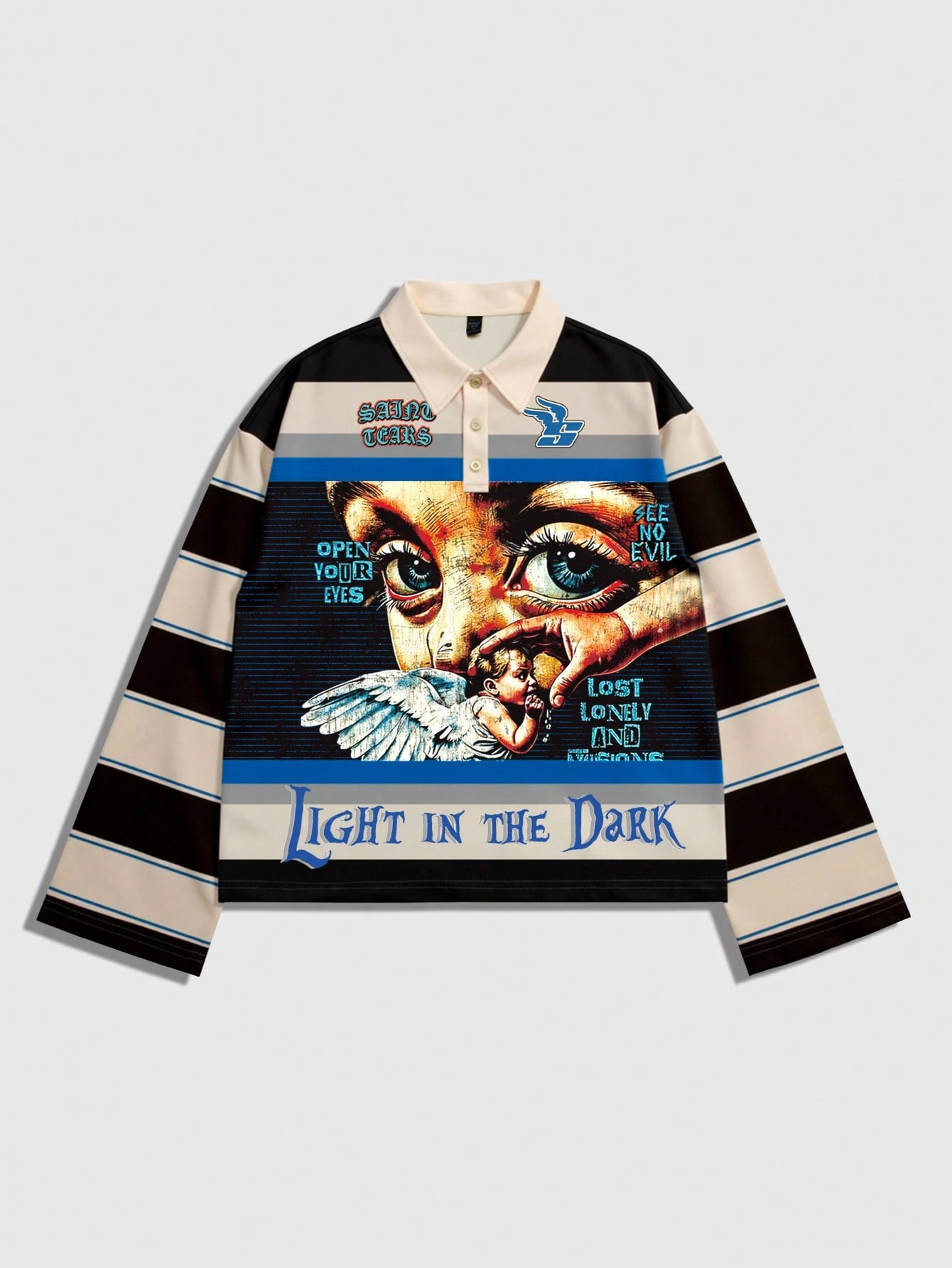 Street Life Men's Striped Collar Long Sleeve Printed T-Shirt, Casual College Style Top
