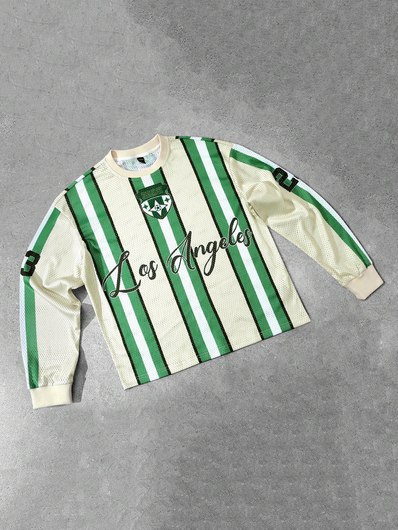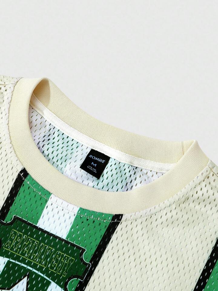Street Life Men's Striped English Print Long Sleeve T-Shirt, Streetwear, Casual, Sports, Fall