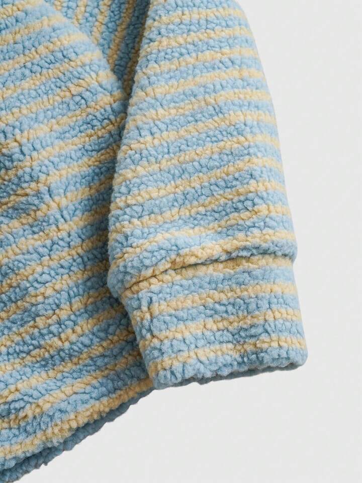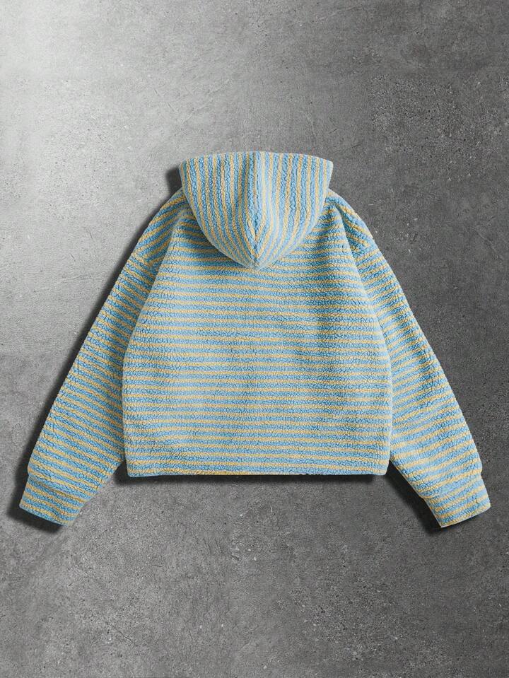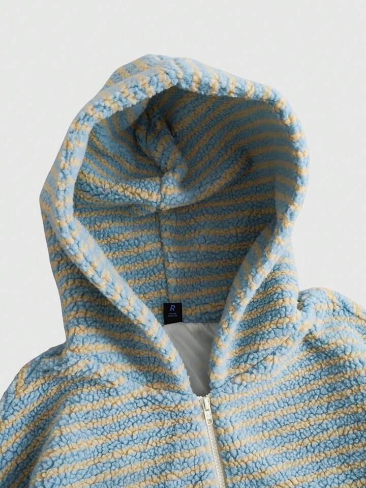 Street Life Men's Striped Fluffy Hooded Loose Jacket