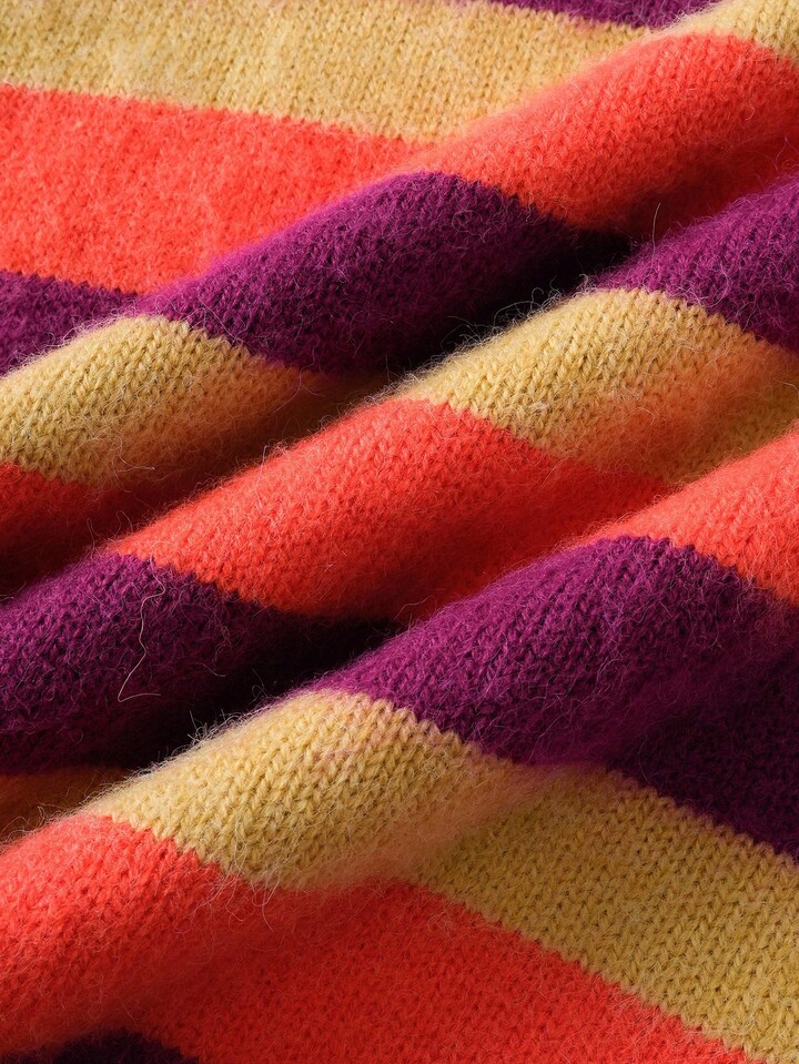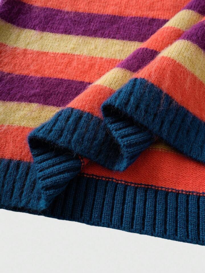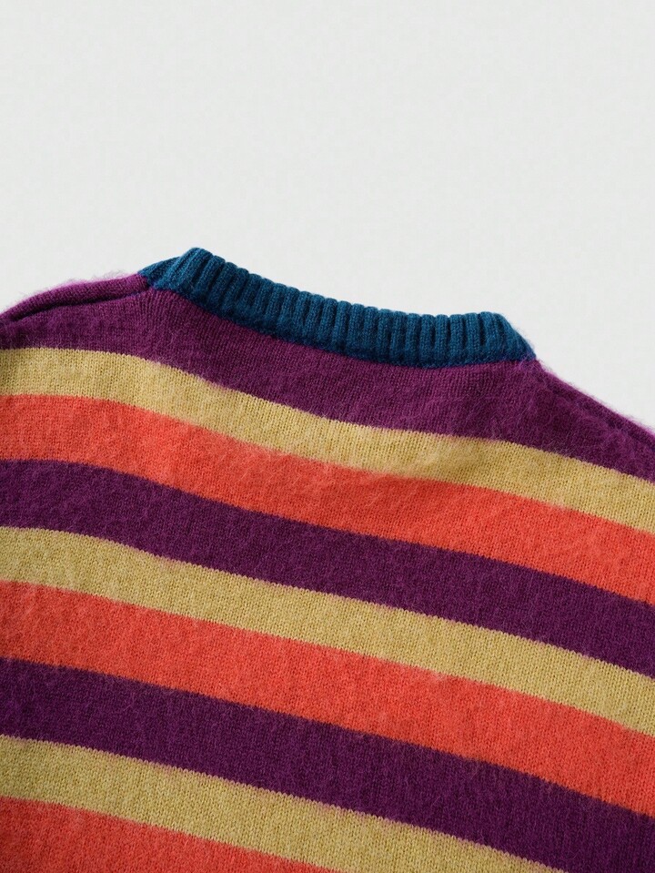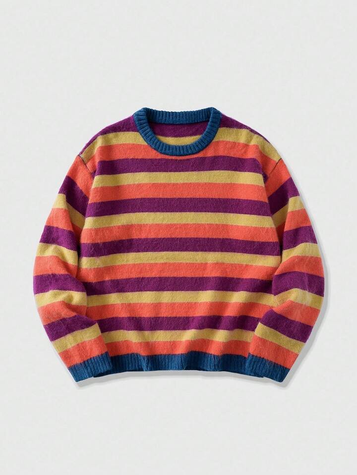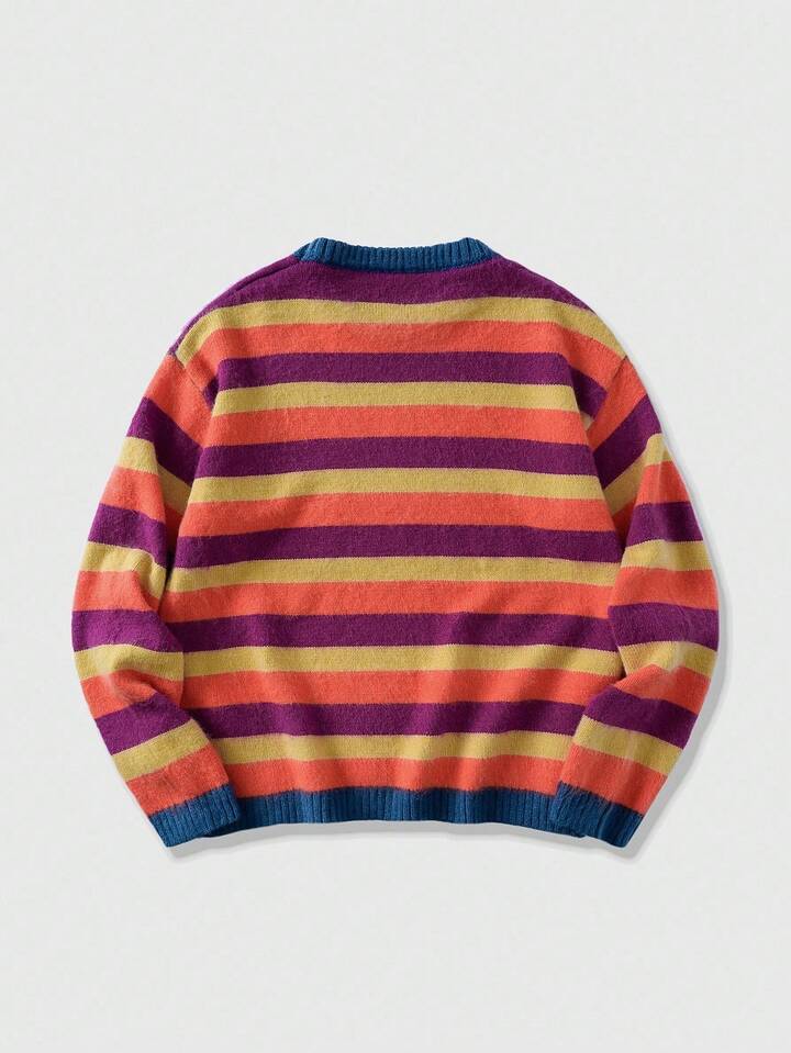 Street Life Men's Striped Jacquard Knit Sweater, Loose Fit, For Fall Winter
