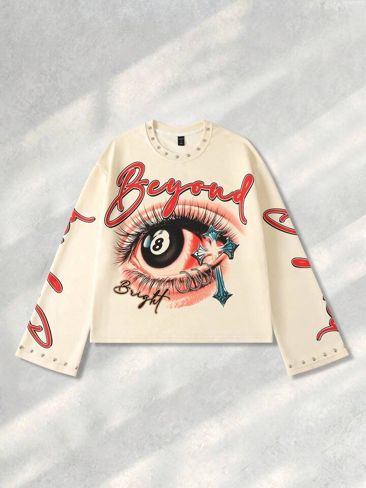 Street Life Men's Studded Eye & Letter Print Long Sleeve T-Shirt, Fall
