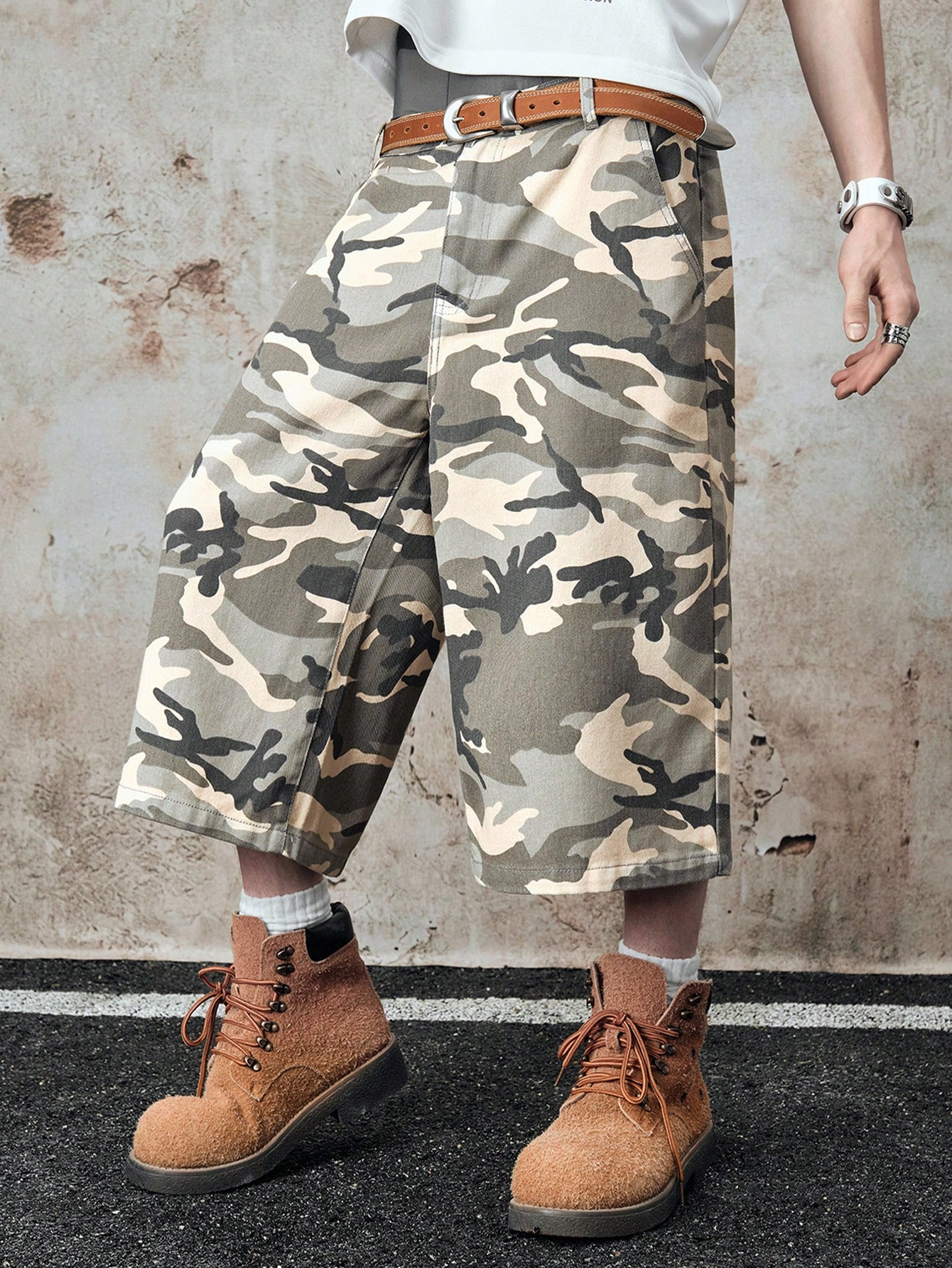 Street Life Men's Summer Casual Fashion Street Camo Print Side Pocket Loose Denim Shorts