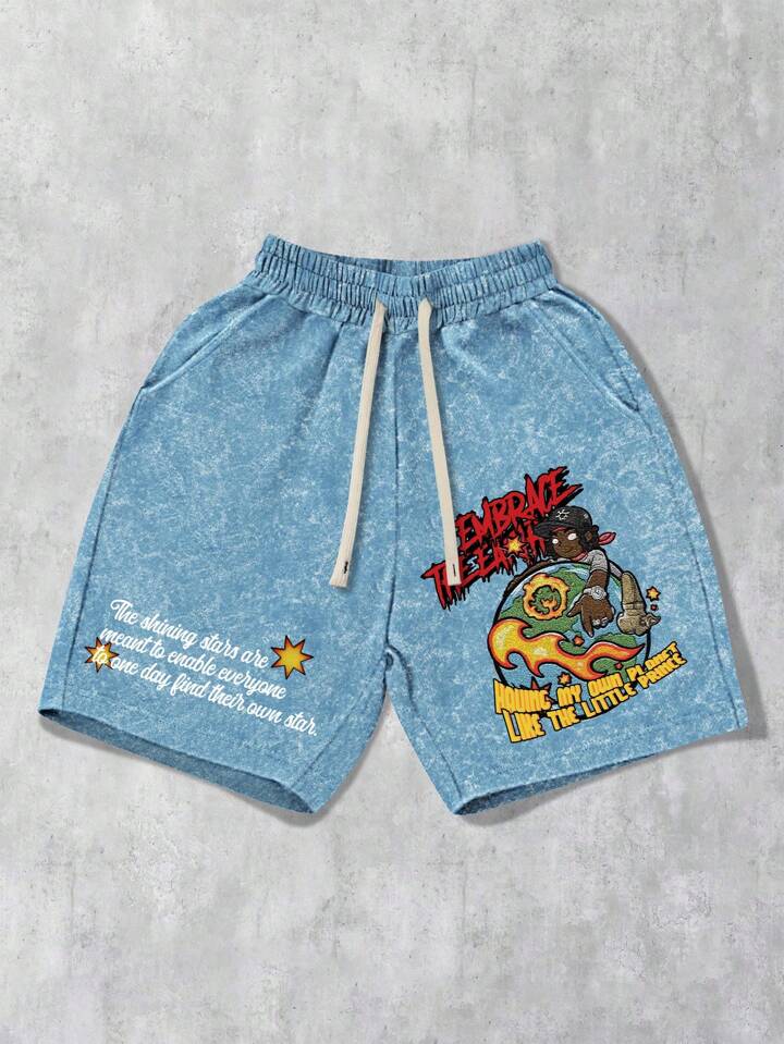 Street Life Men's Summer Casual Slogan Graphic Drawstring Waist Shorts