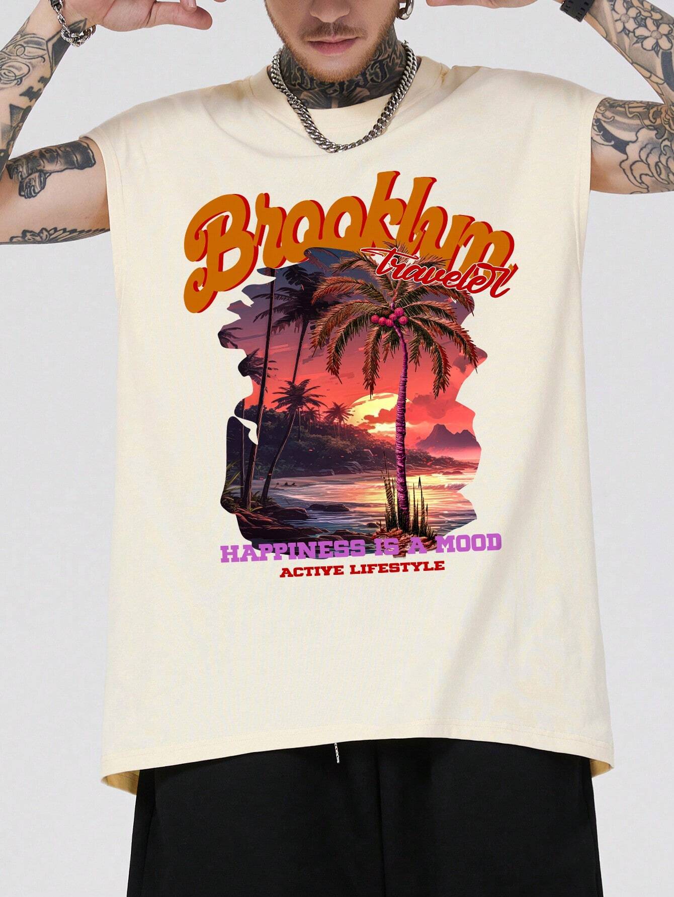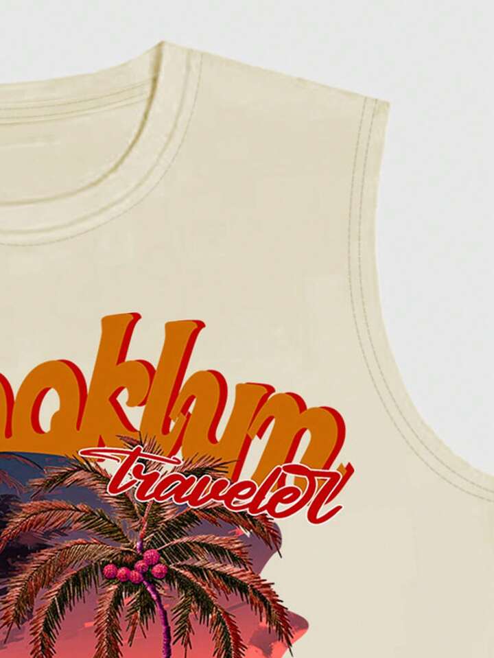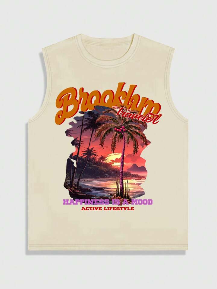 Street Life Men's Sunset Palm Trees Print Tank Top For Spring And Summer On The Beach