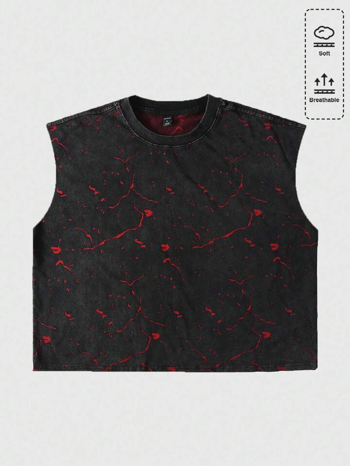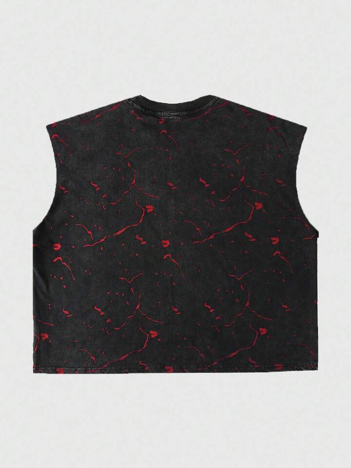 Street Life Men's Tie Dye Round Neck Gothic Loose Washed Tank Top, Oversized Cropped Style, Halloween