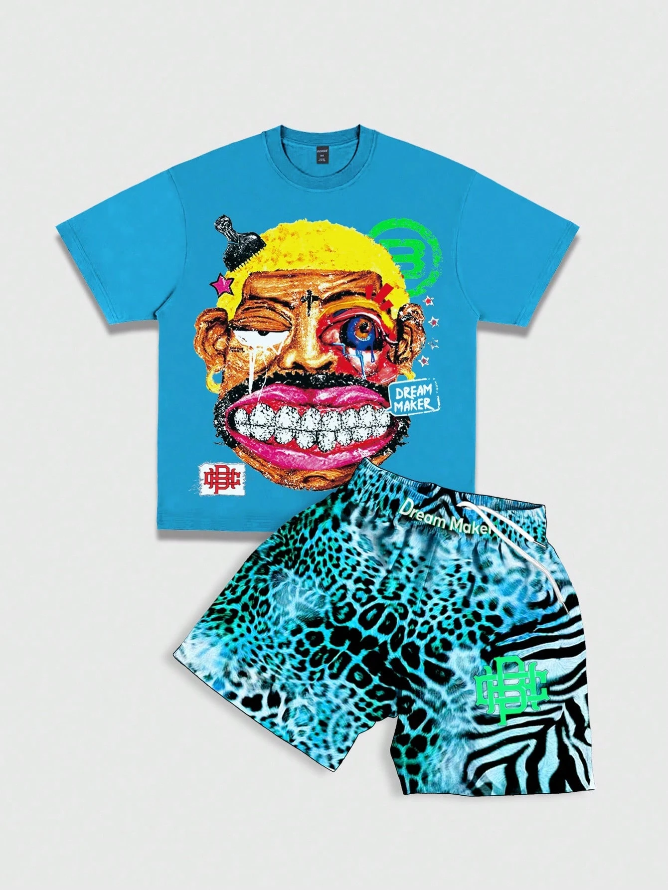 Street Life Men's Vintage Cartoon Character Print T-Shirt And Leopard Shorts Casual Set