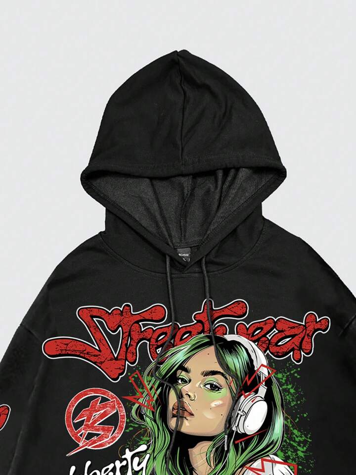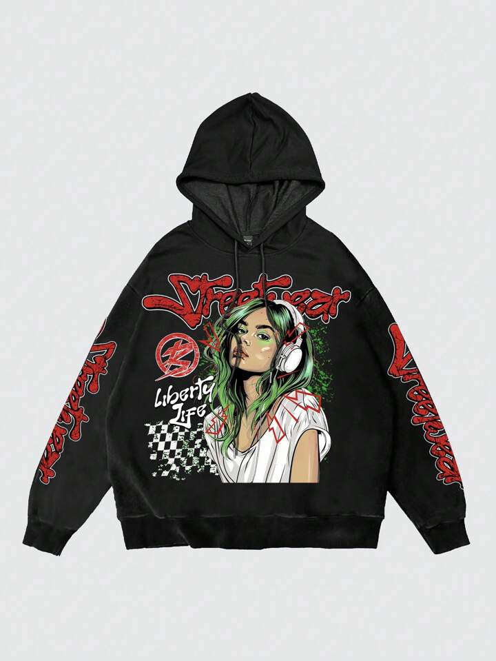 Street Life Men's Vintage Figure Graphic Printed Hoodie