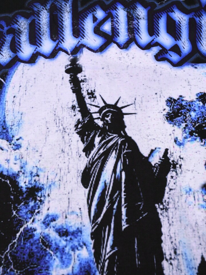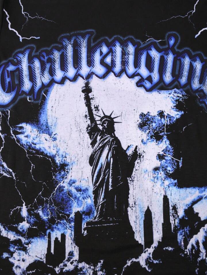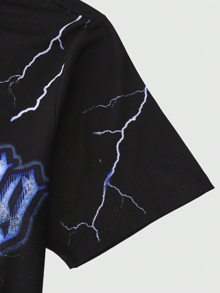 Street Life Men's Vintage Letter And Lightning Graphic Round Neck Casual Short Sleeve T-Shirt
