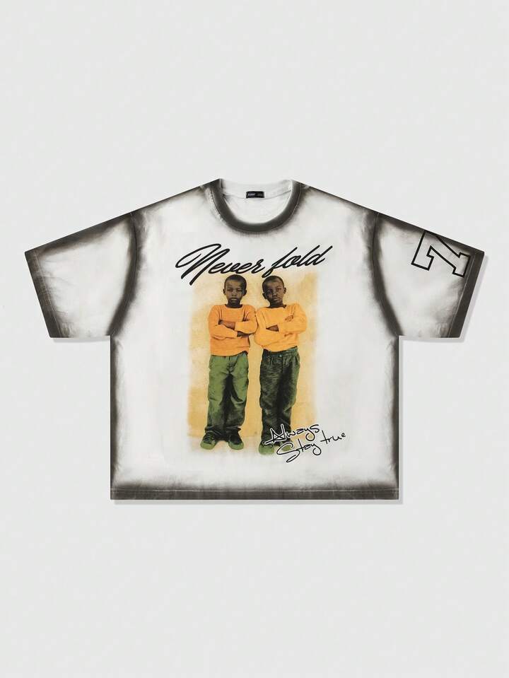 Street Life Men's Vintage Summer Fashion Handpainted People Print Loose Drop Shoulder T-Shirt