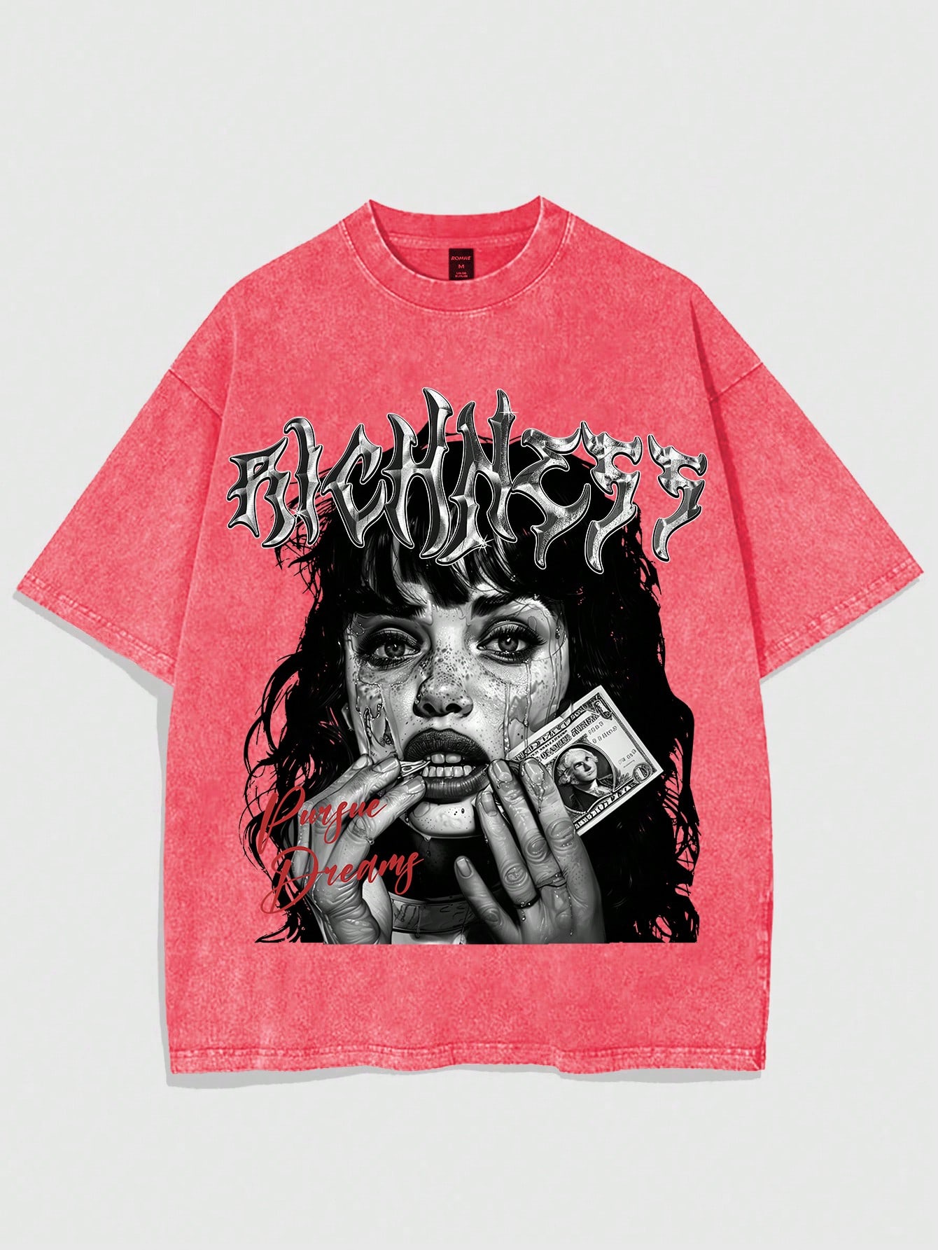 Street Life Men's Vintage Washed Portrait Print T-Shirt, Summer