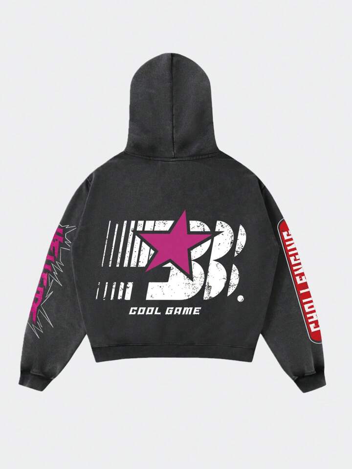 Street Life Men's Washed Letter Print Hoodie Sweatshirt, Street Style