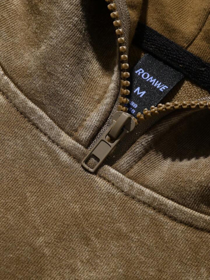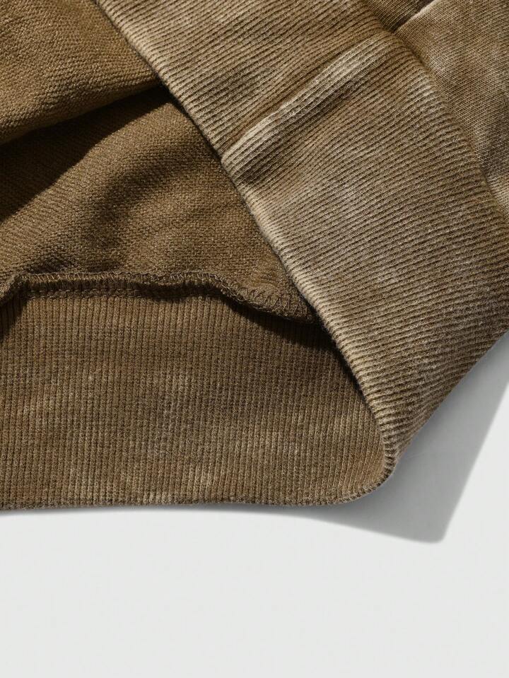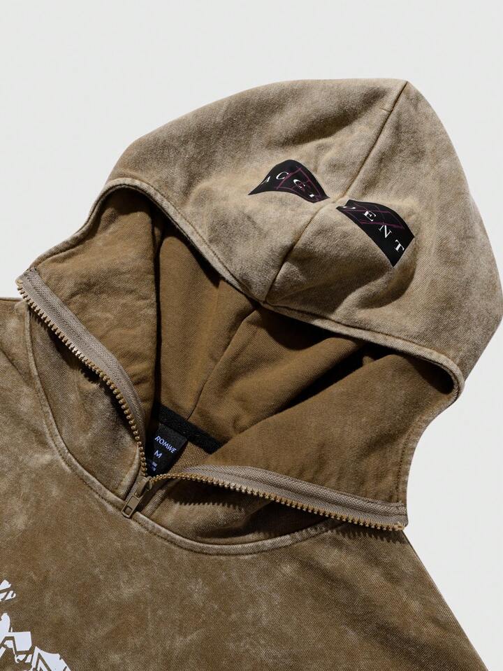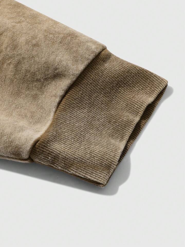 Street Life Men's Washed Letter Print Long Sleeve Hoodie, Loose Fit, Autumn