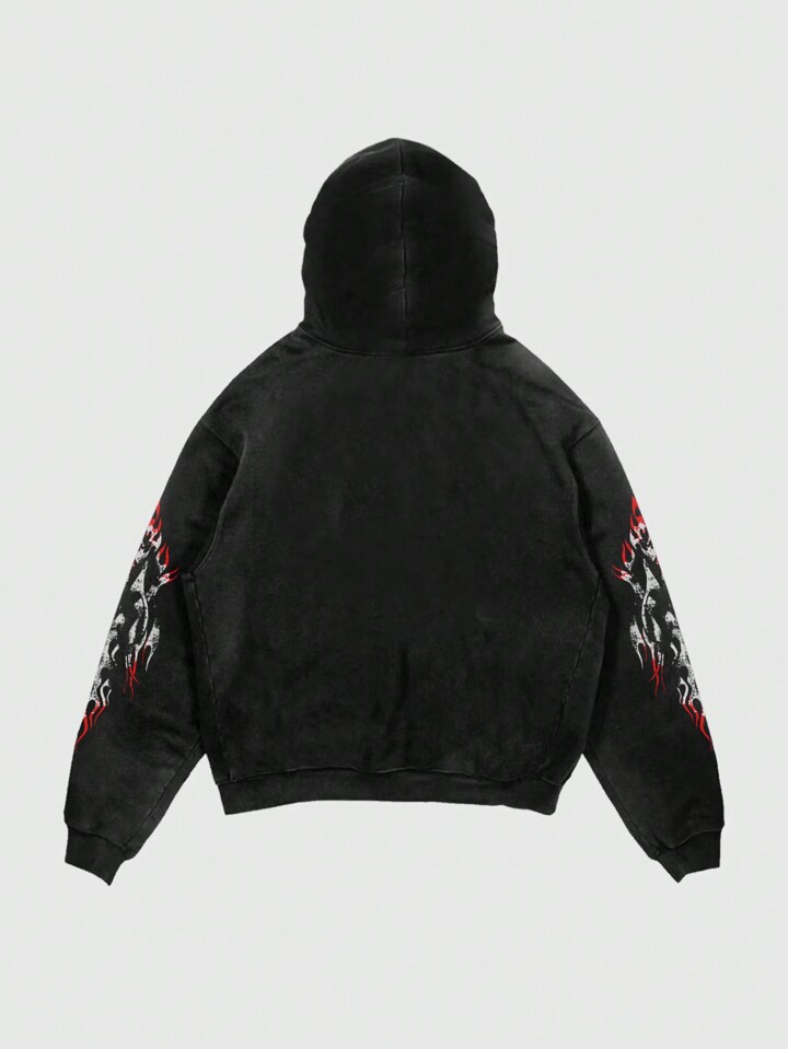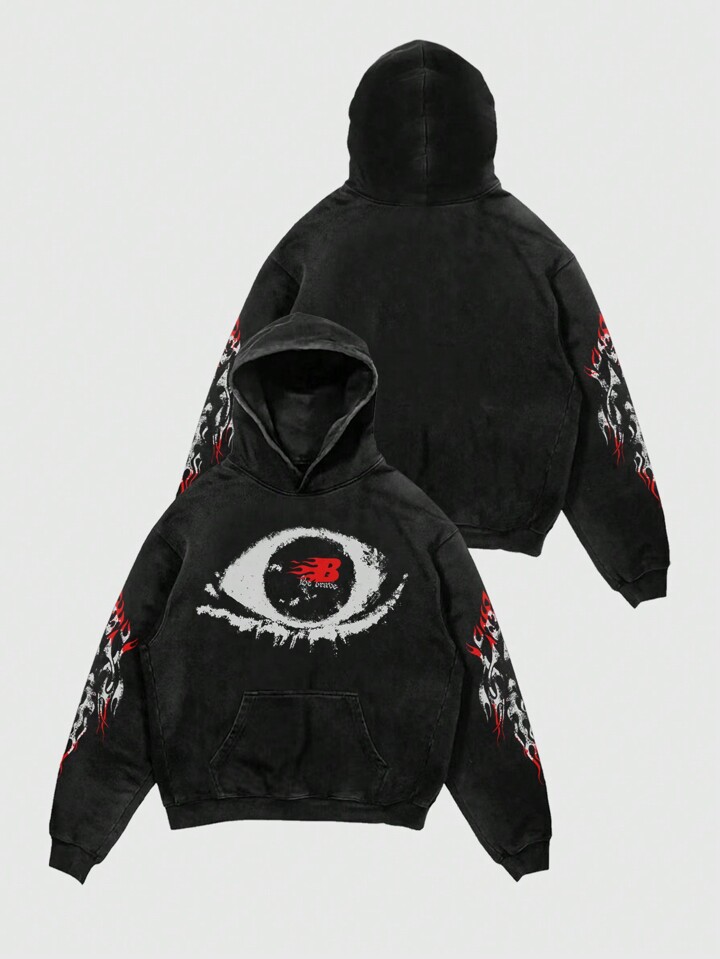 Street Life Men's Washed Letter Print Long Sleeve Pocket Loose Casual Hoodie Sweatshirt, Autumn/Winter