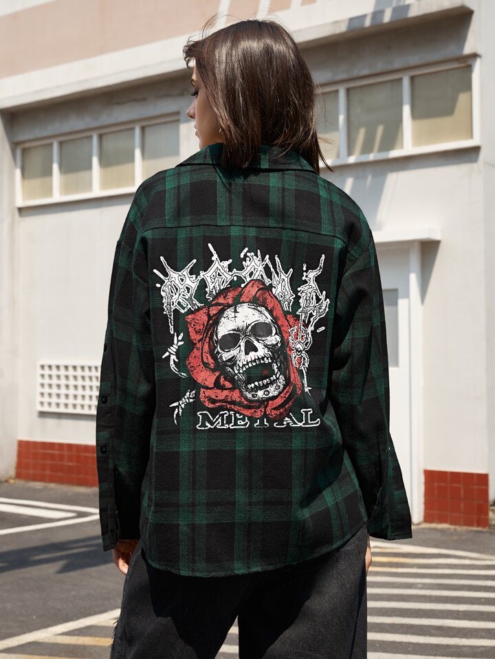 Street Life Plaid & Letter Graphic Oversized Shirt