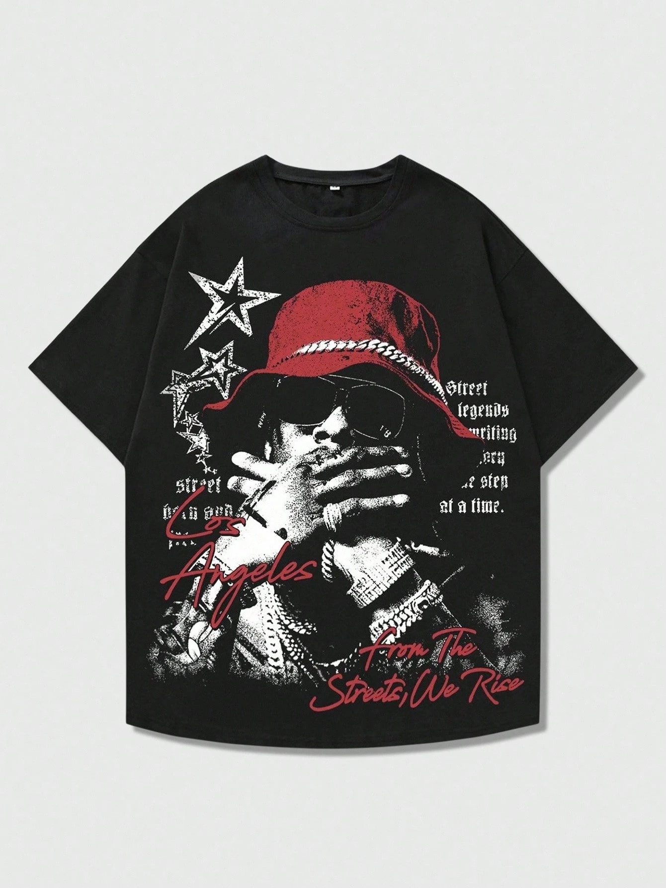 Street Life Plus Size Women Black Round Neck Short Sleeve T-Shirt