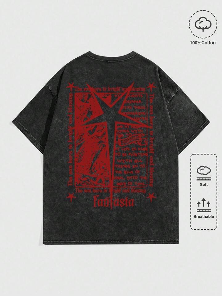 Street Life Snowflake, Star & Letter Graphic Round Neck Short Sleeve T-Shirt