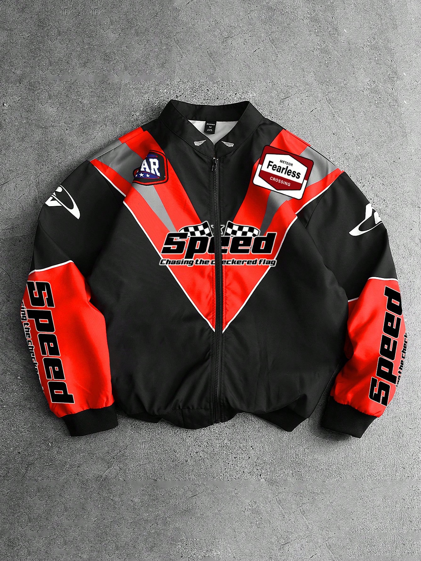 Street Life Spring Casual Graphic Red Men'S Casual Contrast Color Patchwork Letter Print Jacket, Autumn
