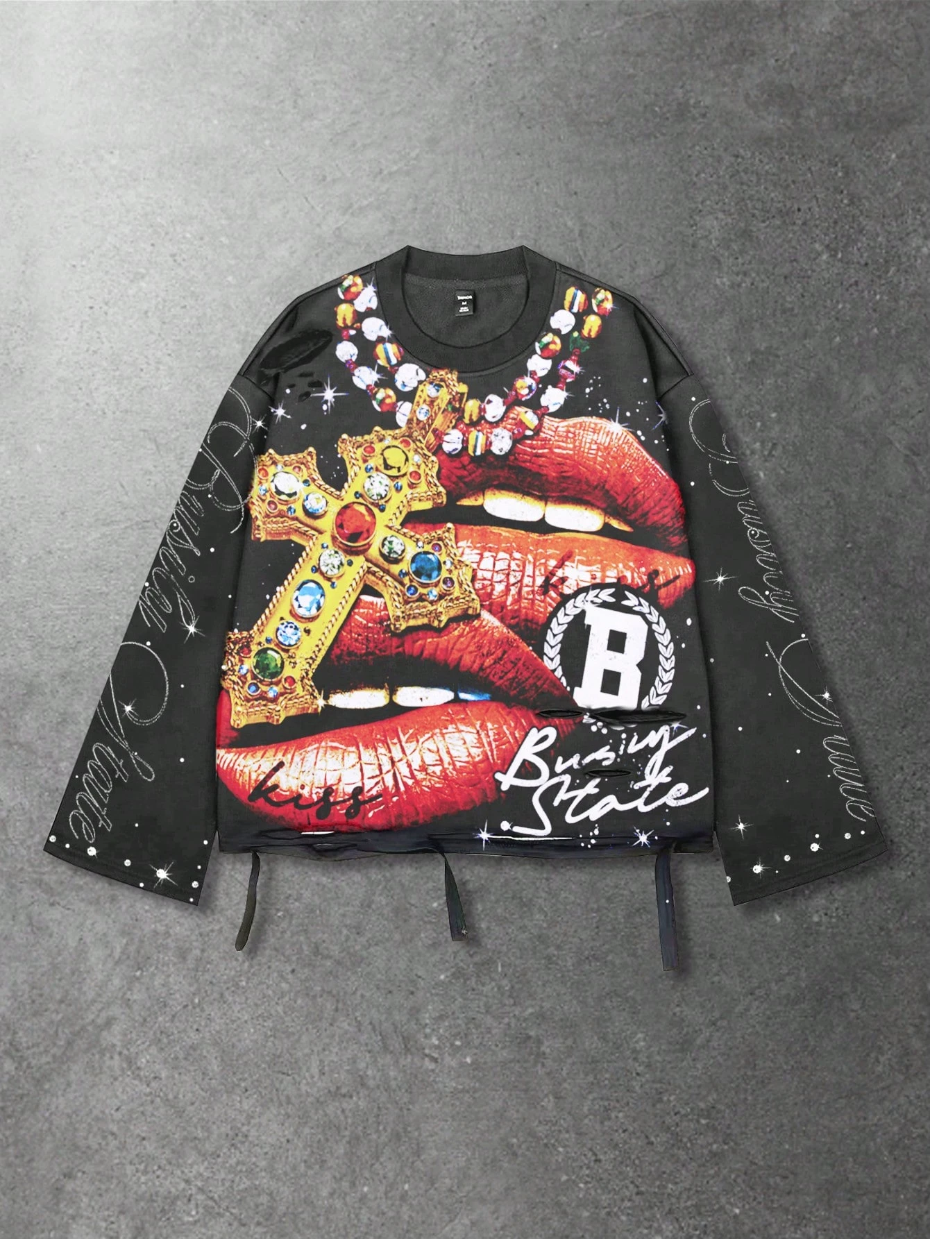 Street Life Spring Casual Graphic Vintage Street Style Distressed Saint Graphic Long Sleeve Crew Neck Men'S T-Shirt