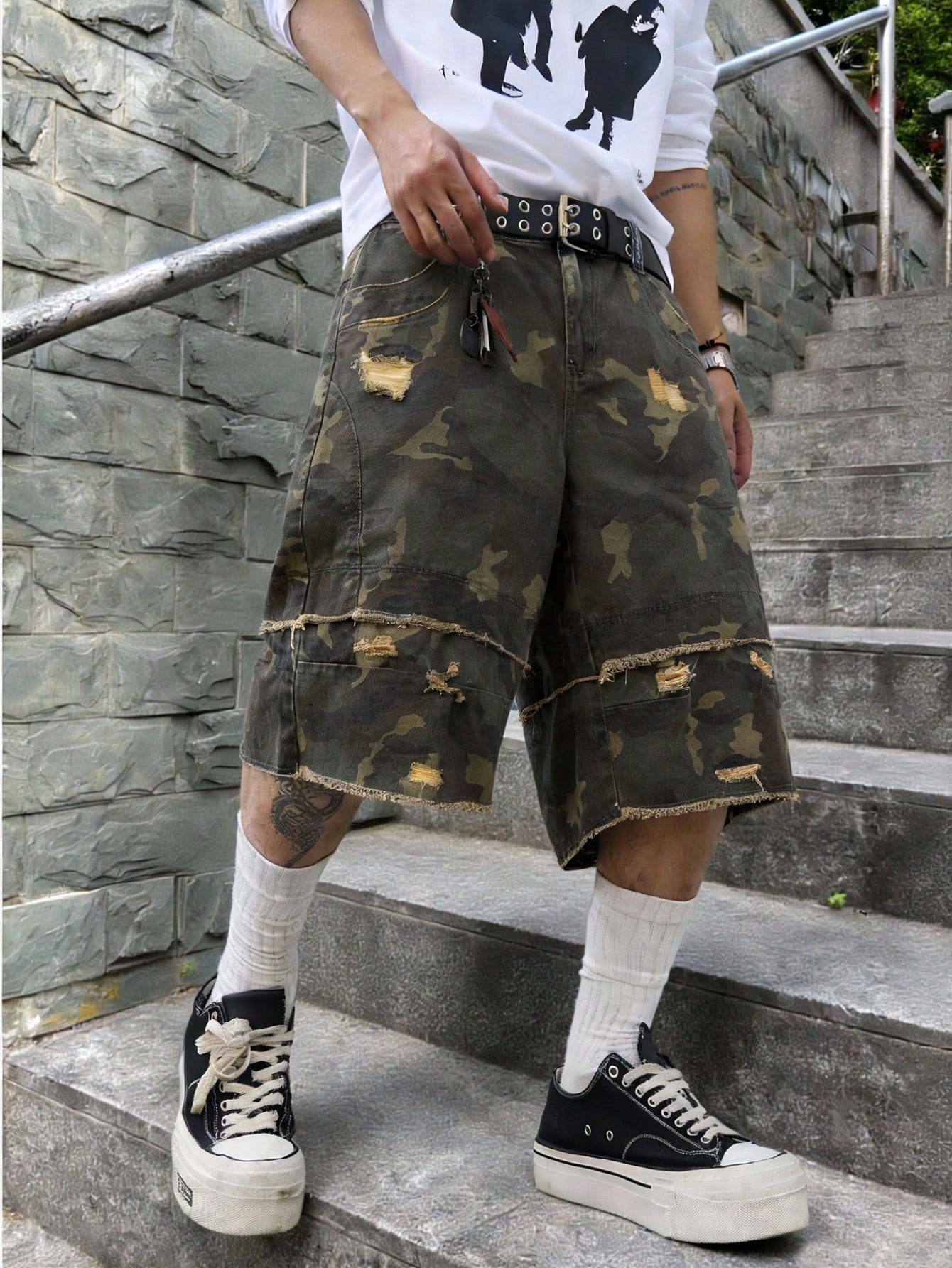 Street Life Spring/Summer Casual Graphic Men'S Camouflage Print Pocket Distressed Hem Casual Jeans