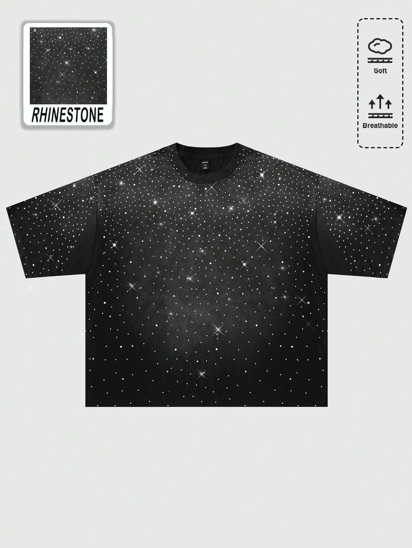 Street Life Men's Sparkling Rhinestone Washed T-Shirt, Loose Short Style