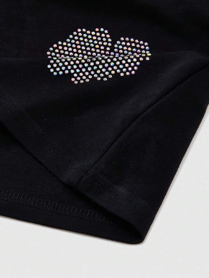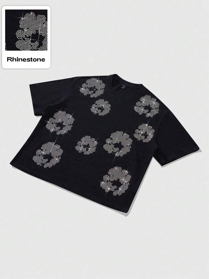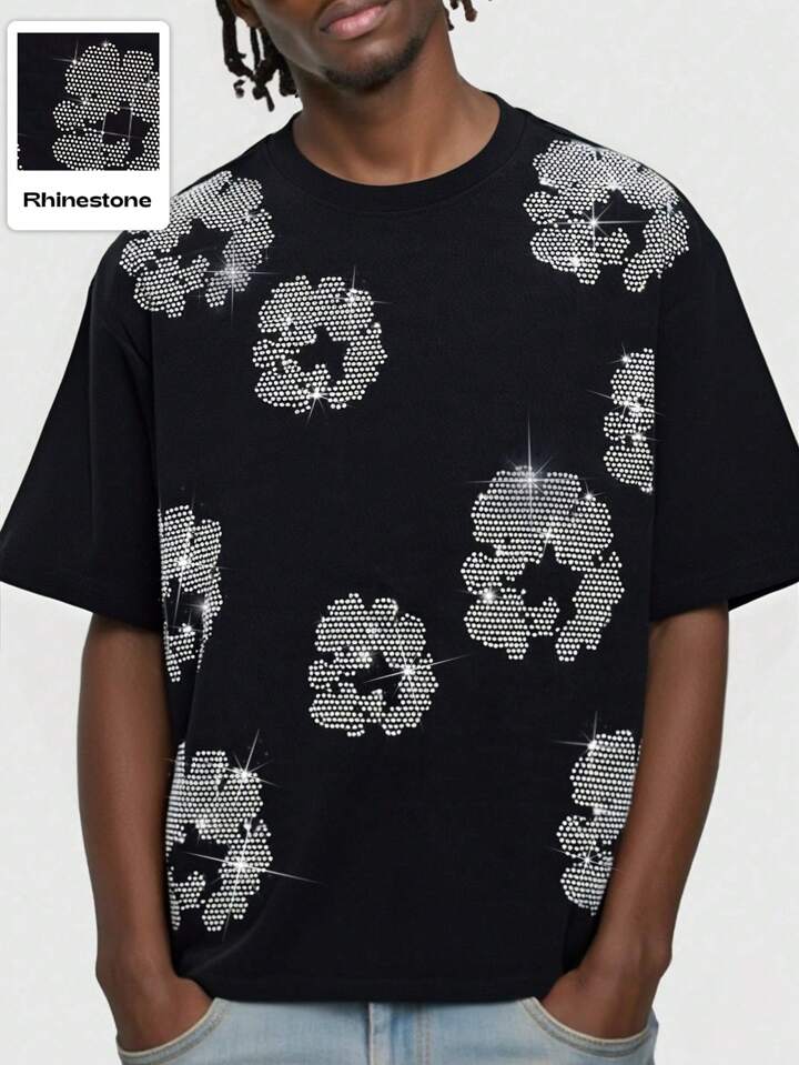 Street Life Street Men's American Floral Pattern Rhinestone Embellished Short Sleeve T-Shirt