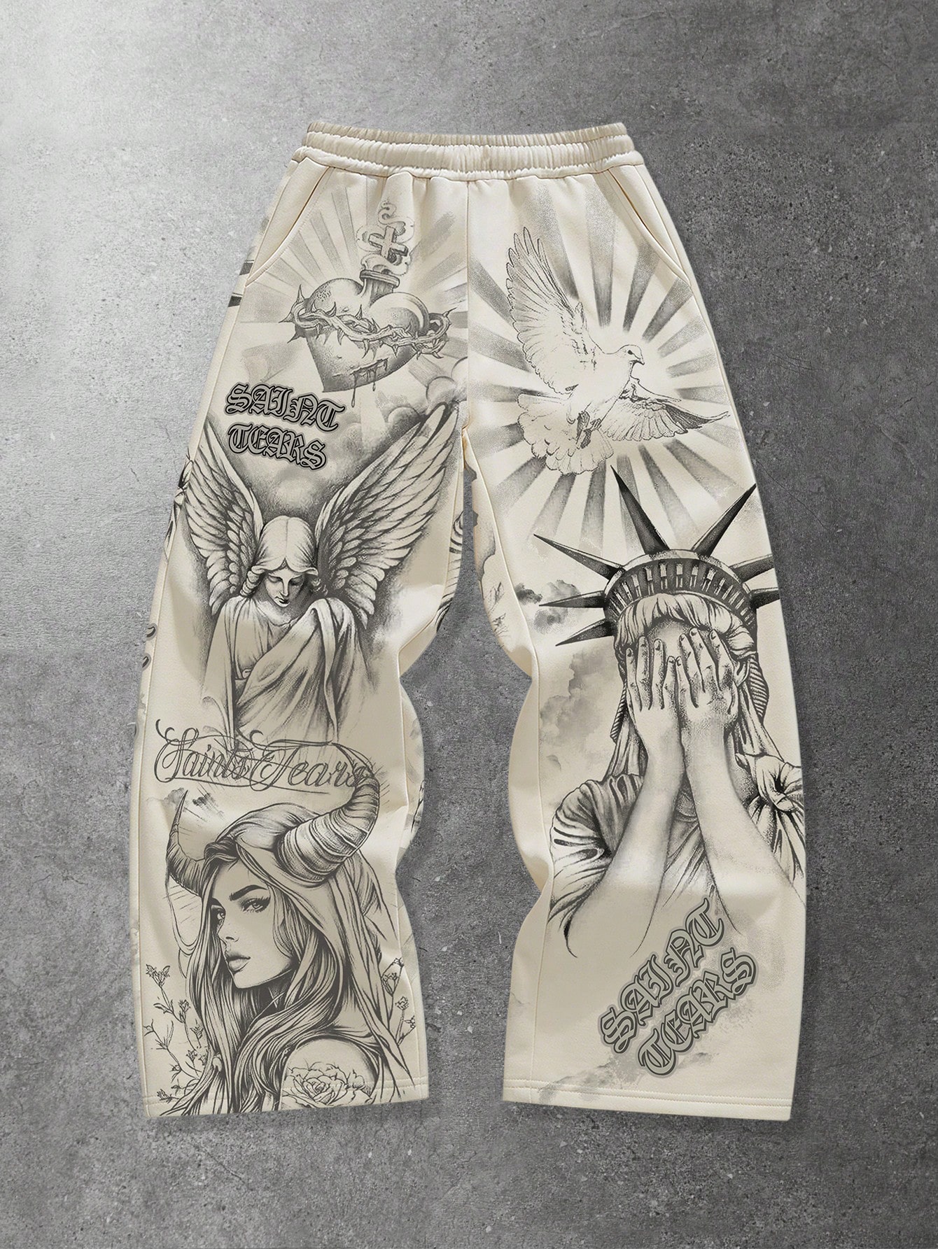 Street Life Teen Boy Angel Print Elastic Waist Pocket Casual Sweatpants