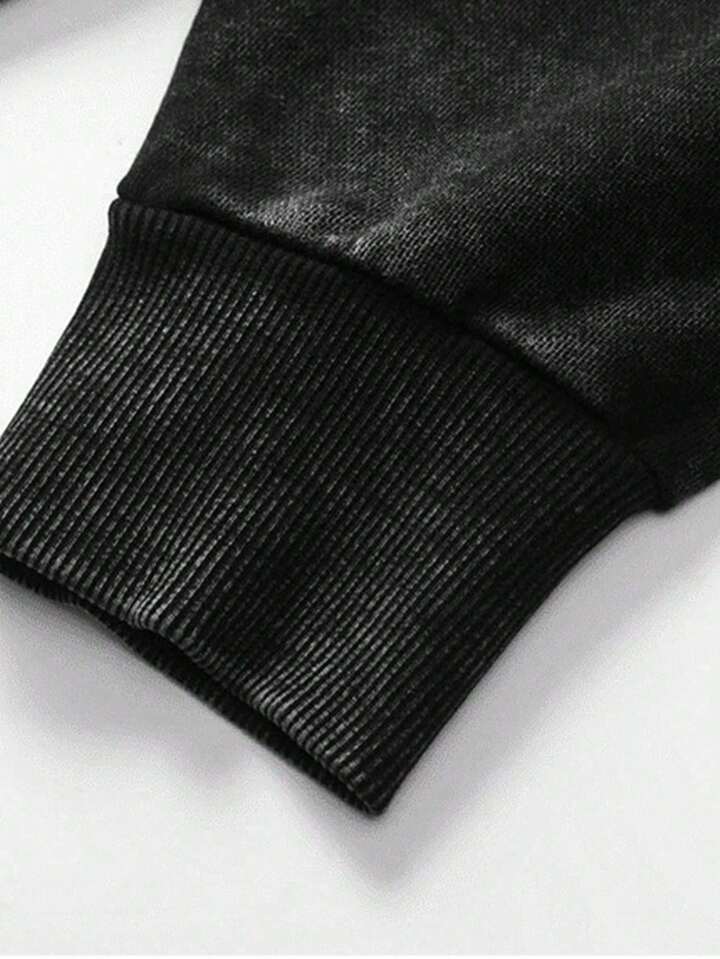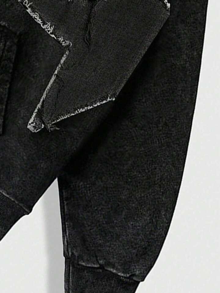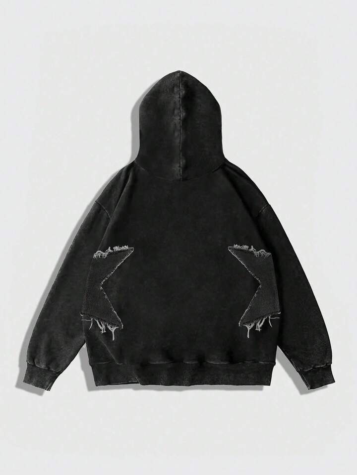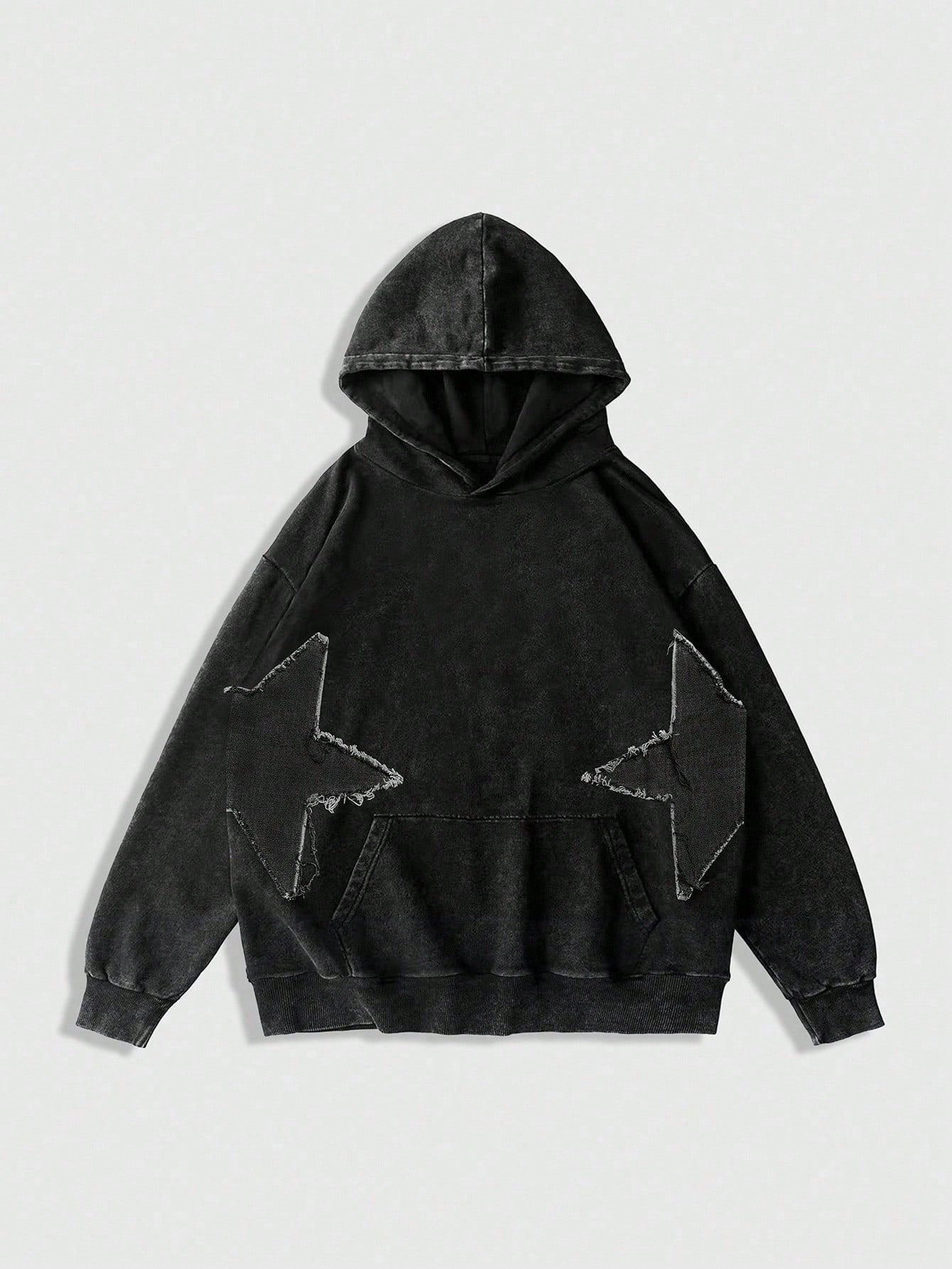Street Life Teen Boy's Autumn Star Frayed Drawstring Black Hoodie Casual Sweatshirt Fall Winter