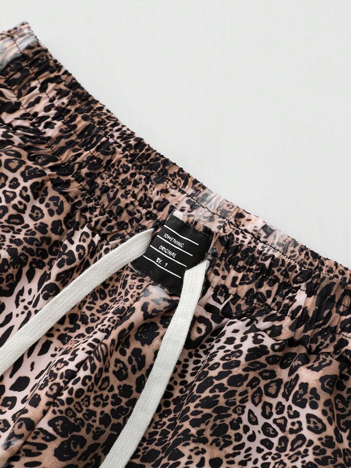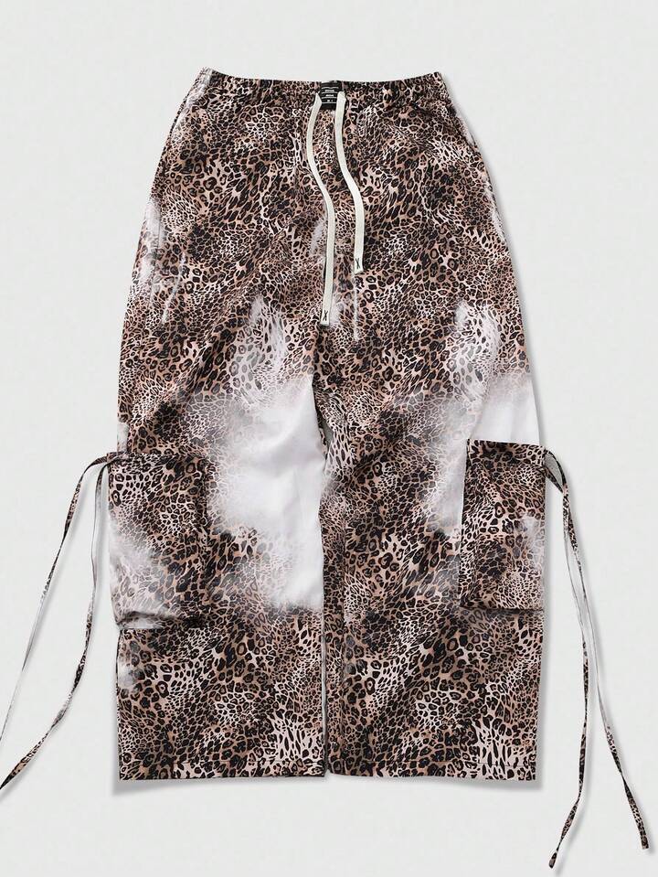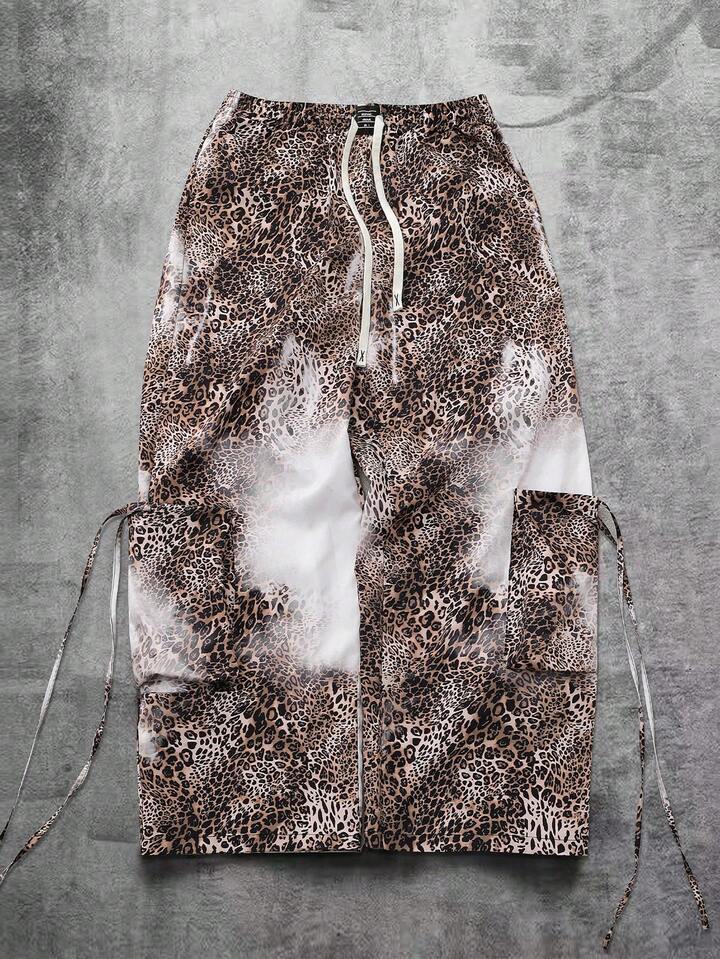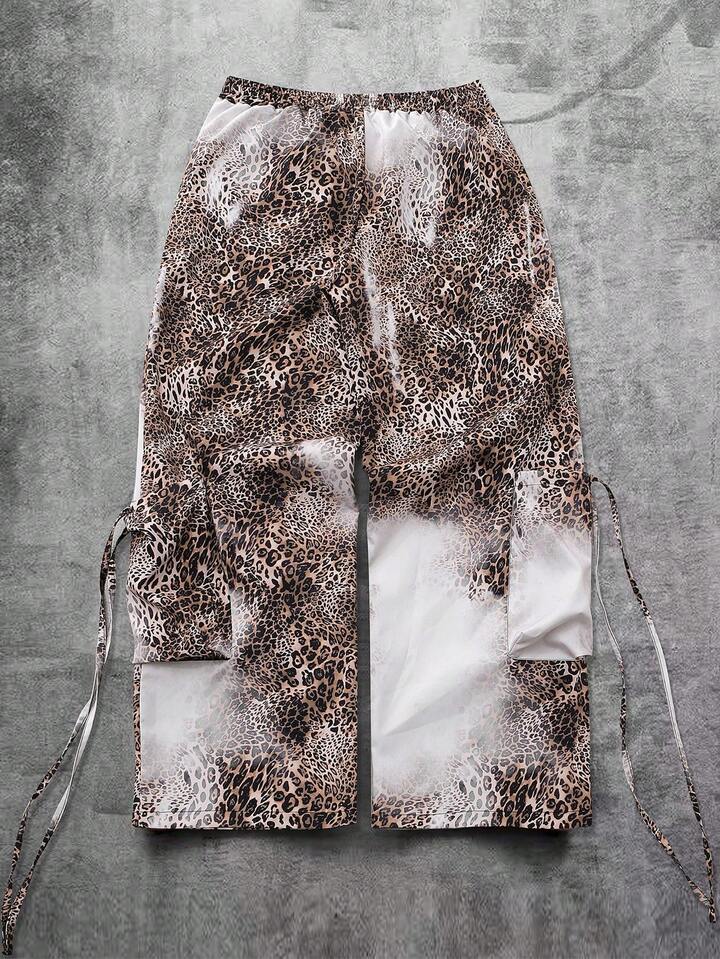 Street Life Unisex Straight Leg Cargo Pants With Leopard Print Texture, Streetwear American Style, For Fall
