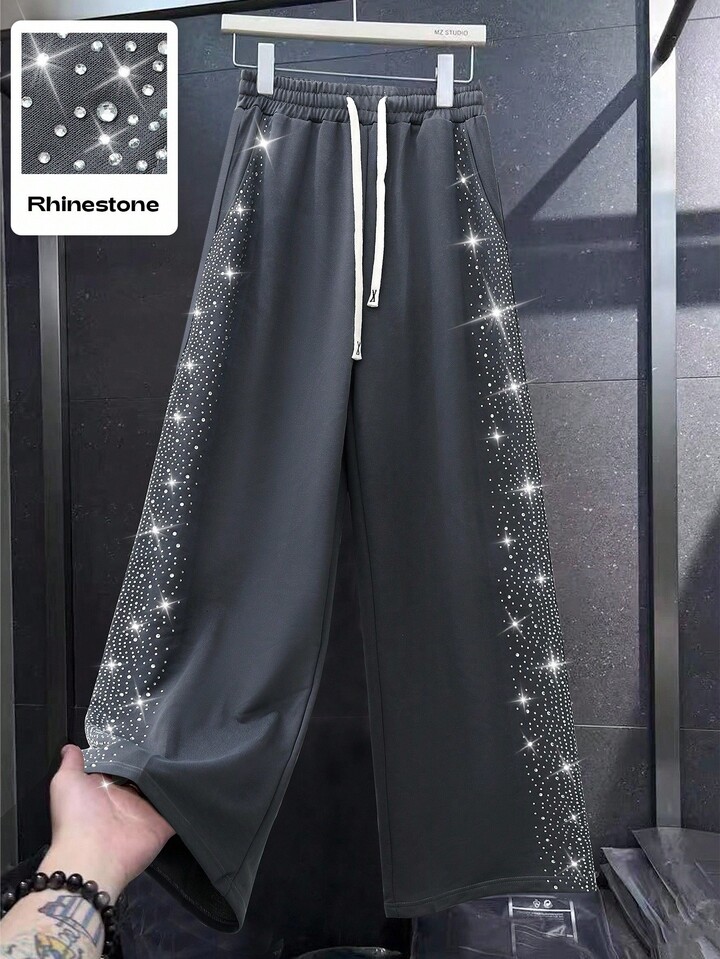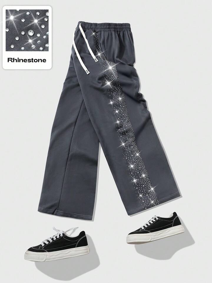 Street Life Unisex Straight Leg Sweatpants With Rhinestone American Street Style Design