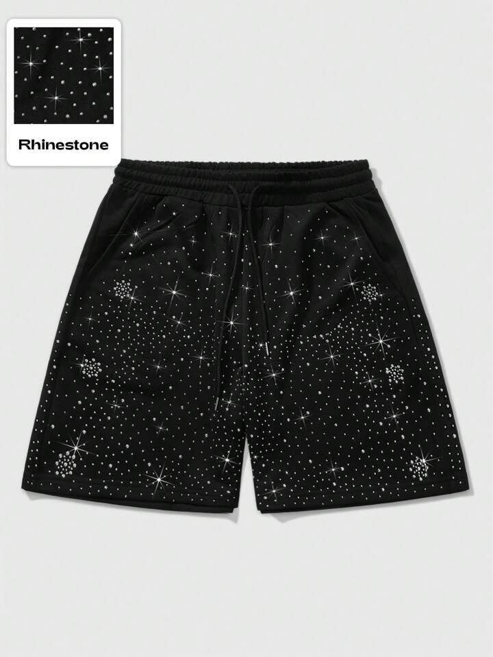 Street Life Unisex Streetwear Style Rhinestone Star Print Shorts