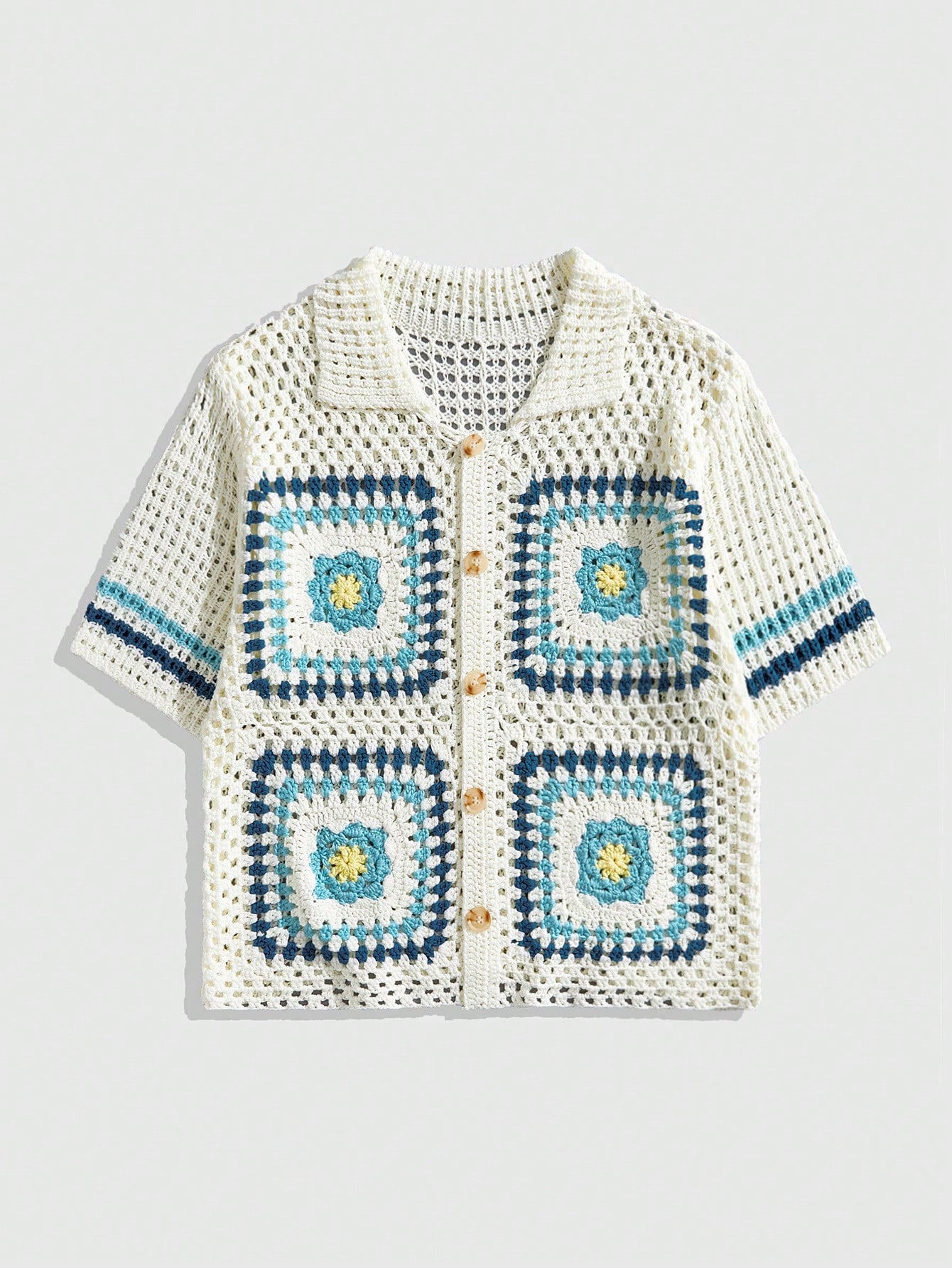 Street Life Vintage Grandma Plaid Collar Hand Knit Sweater For Men, Vacation