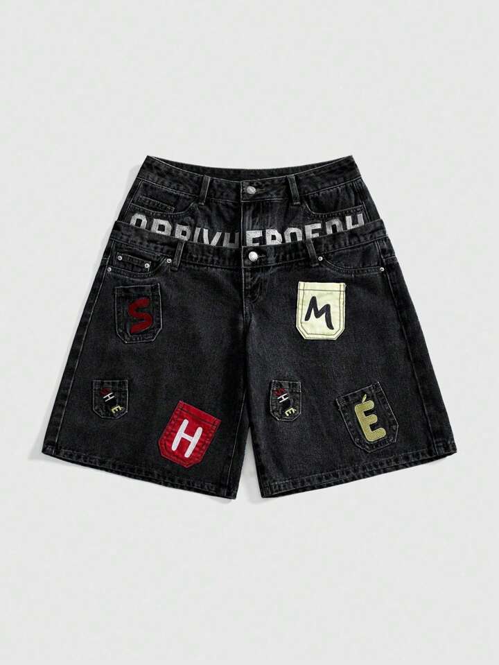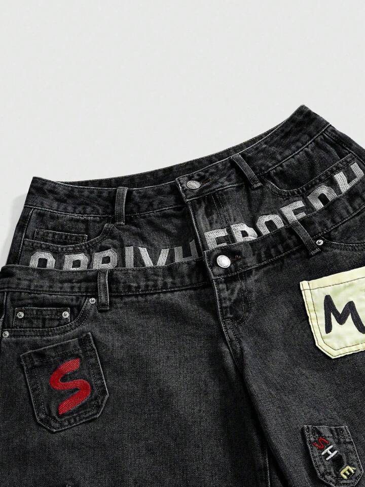 Street Life Y2K Streetwear Style Embroidered Pocket Design Dual Waistband Relaxed Fit Low Waist Capri Jeans