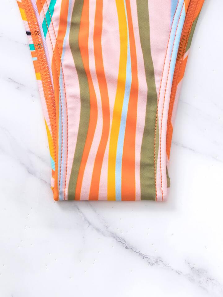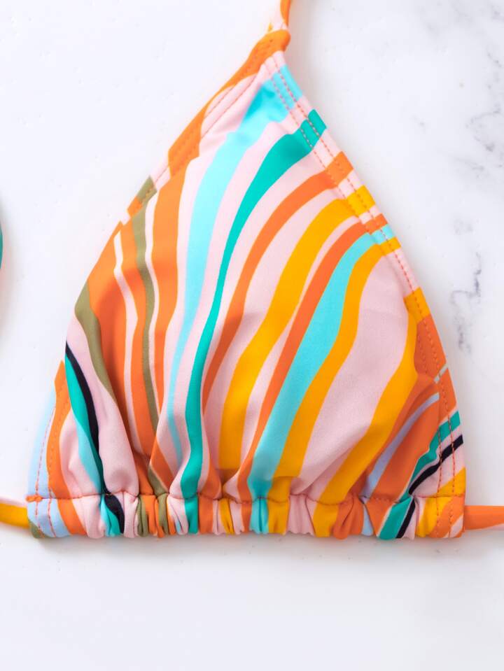 Striped Halter Triangle Tie Side Summer Beach Bikini Set