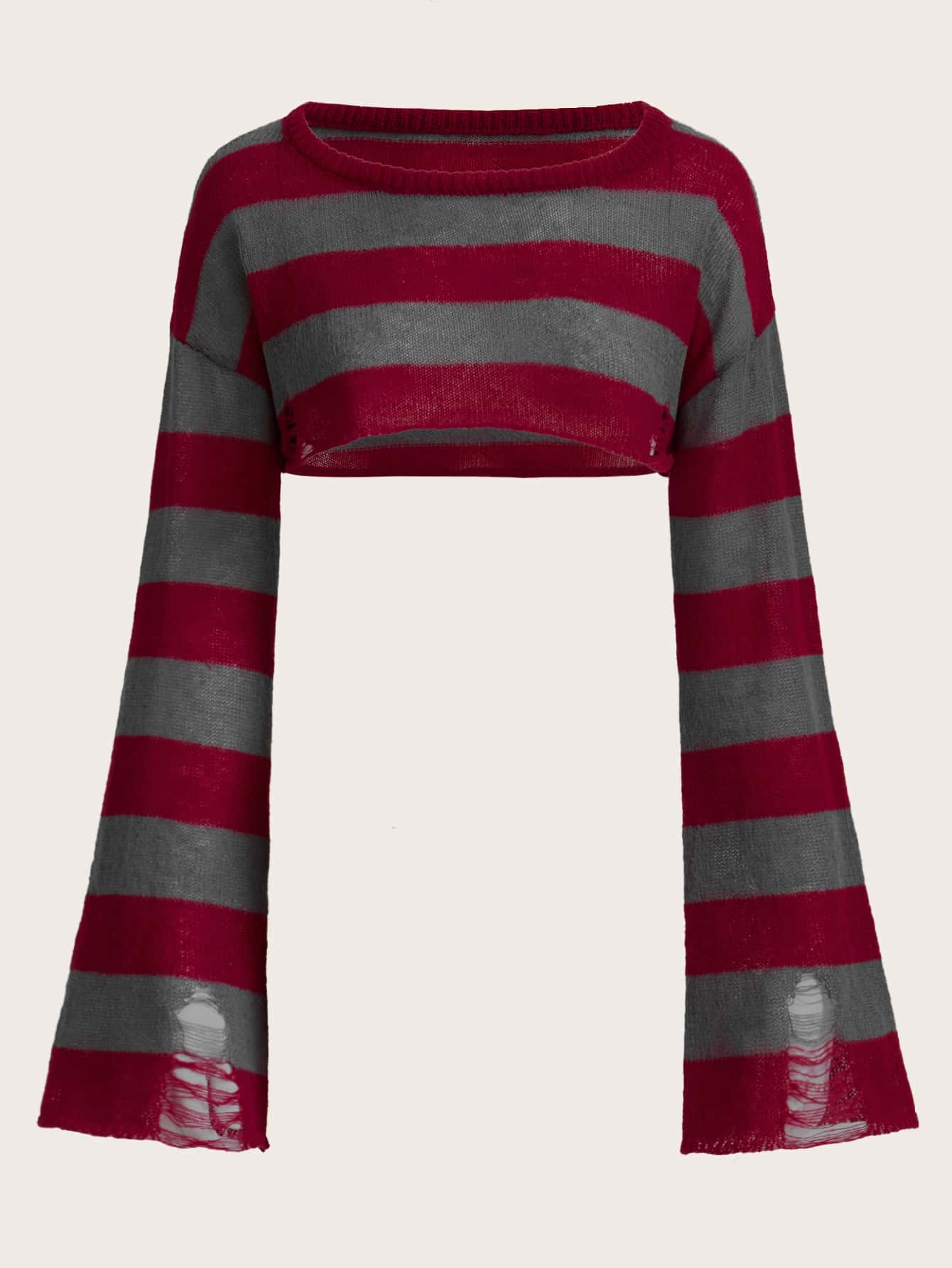 Striped Pattern Flounce Sleeve Sweater