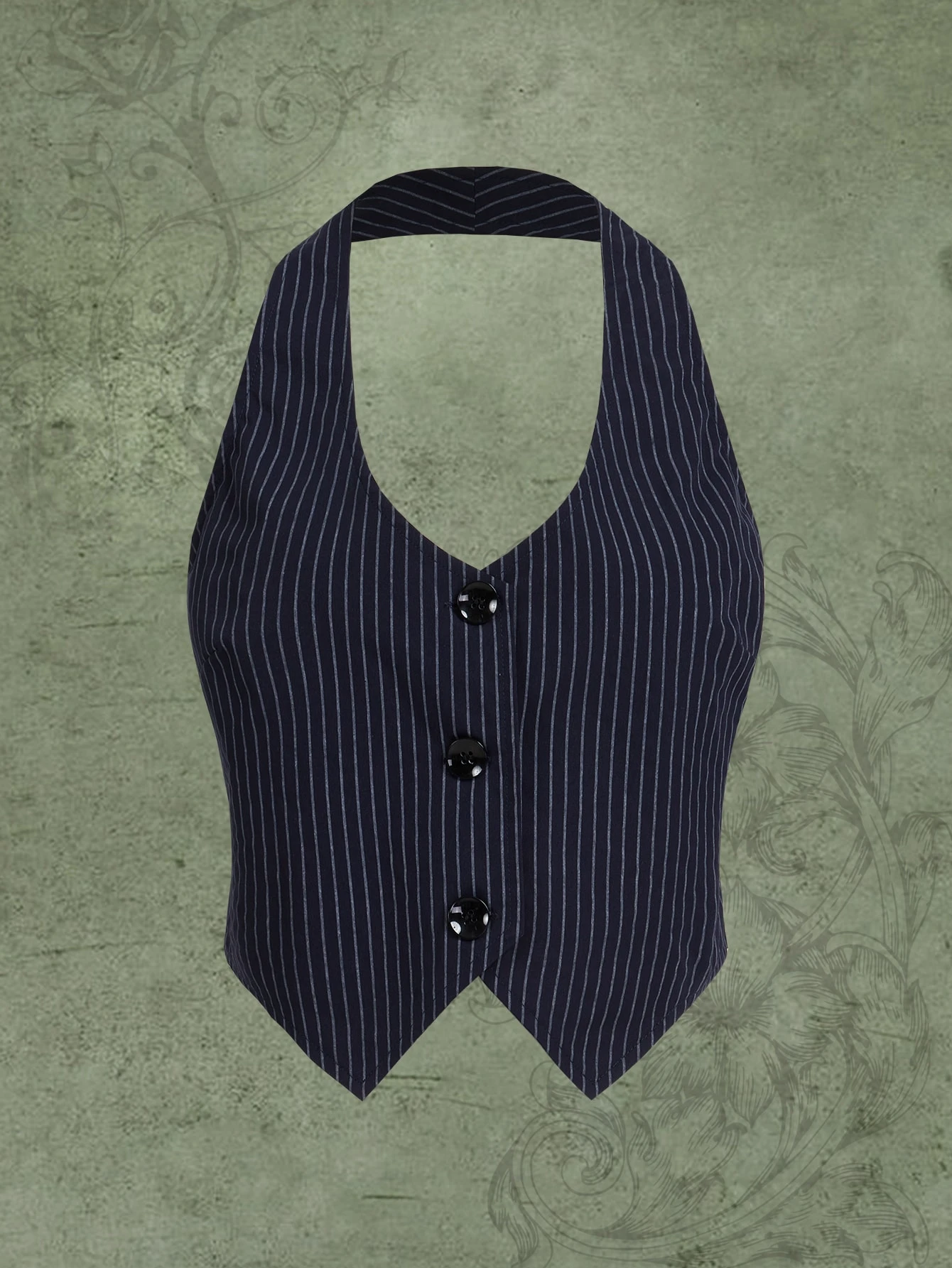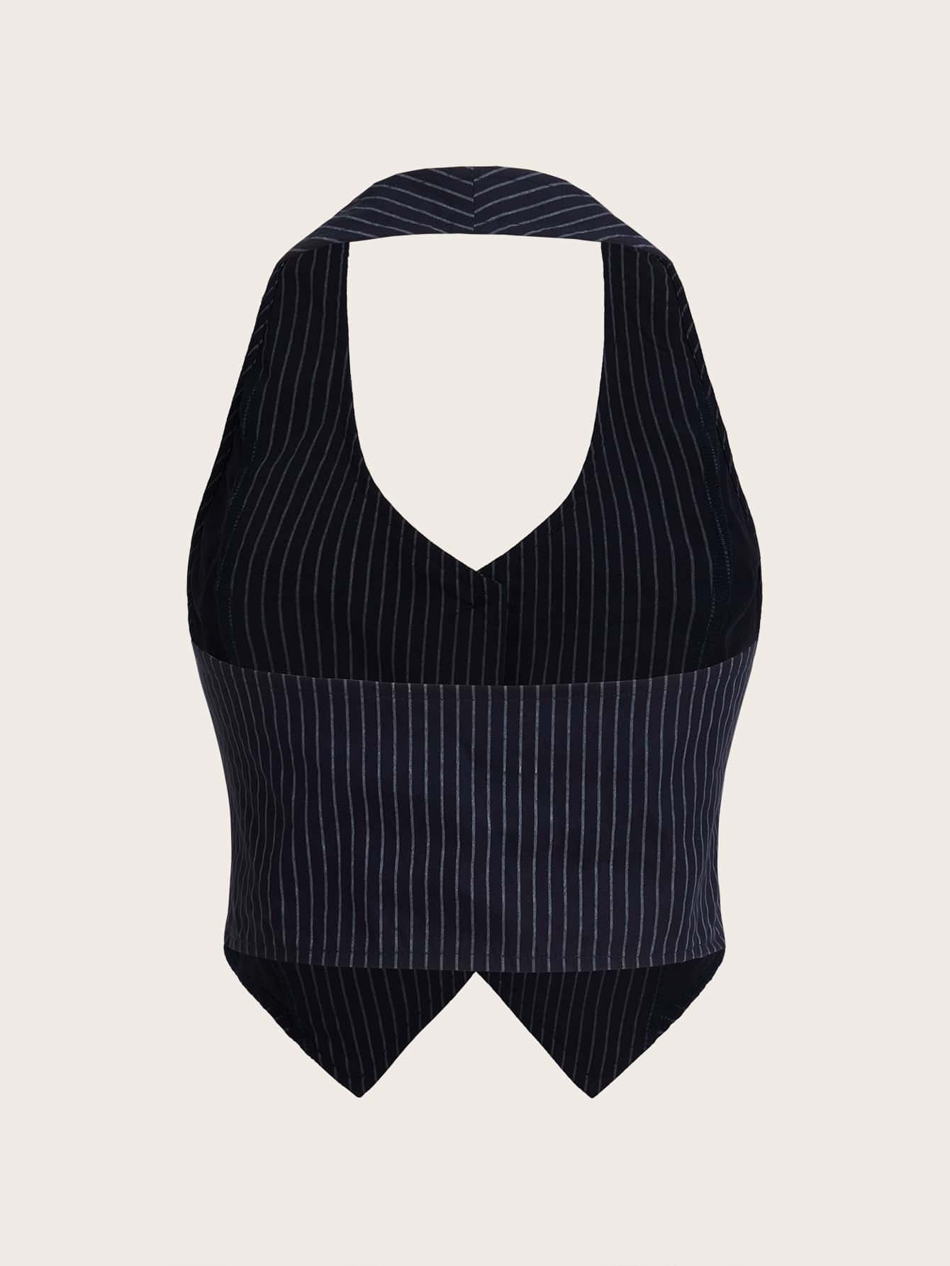 Striped Print Button Front Halter Neck Backless Crop Blazer